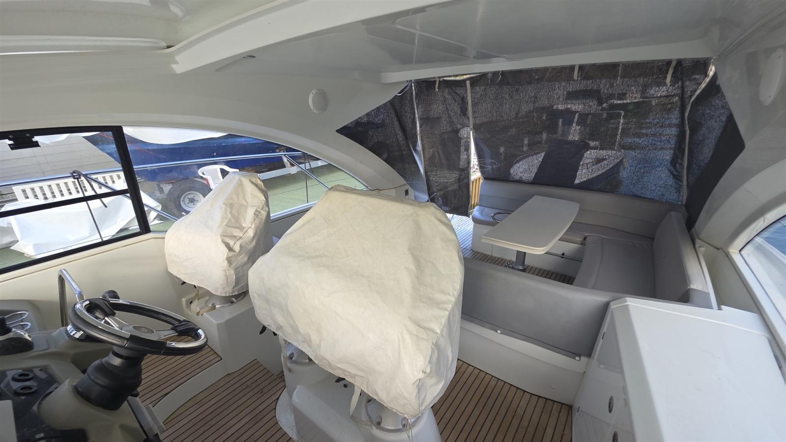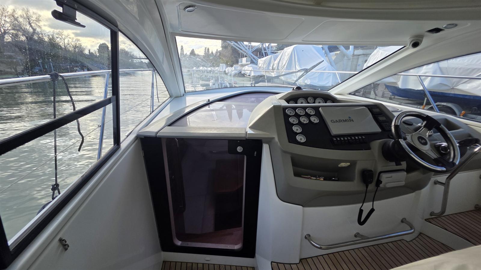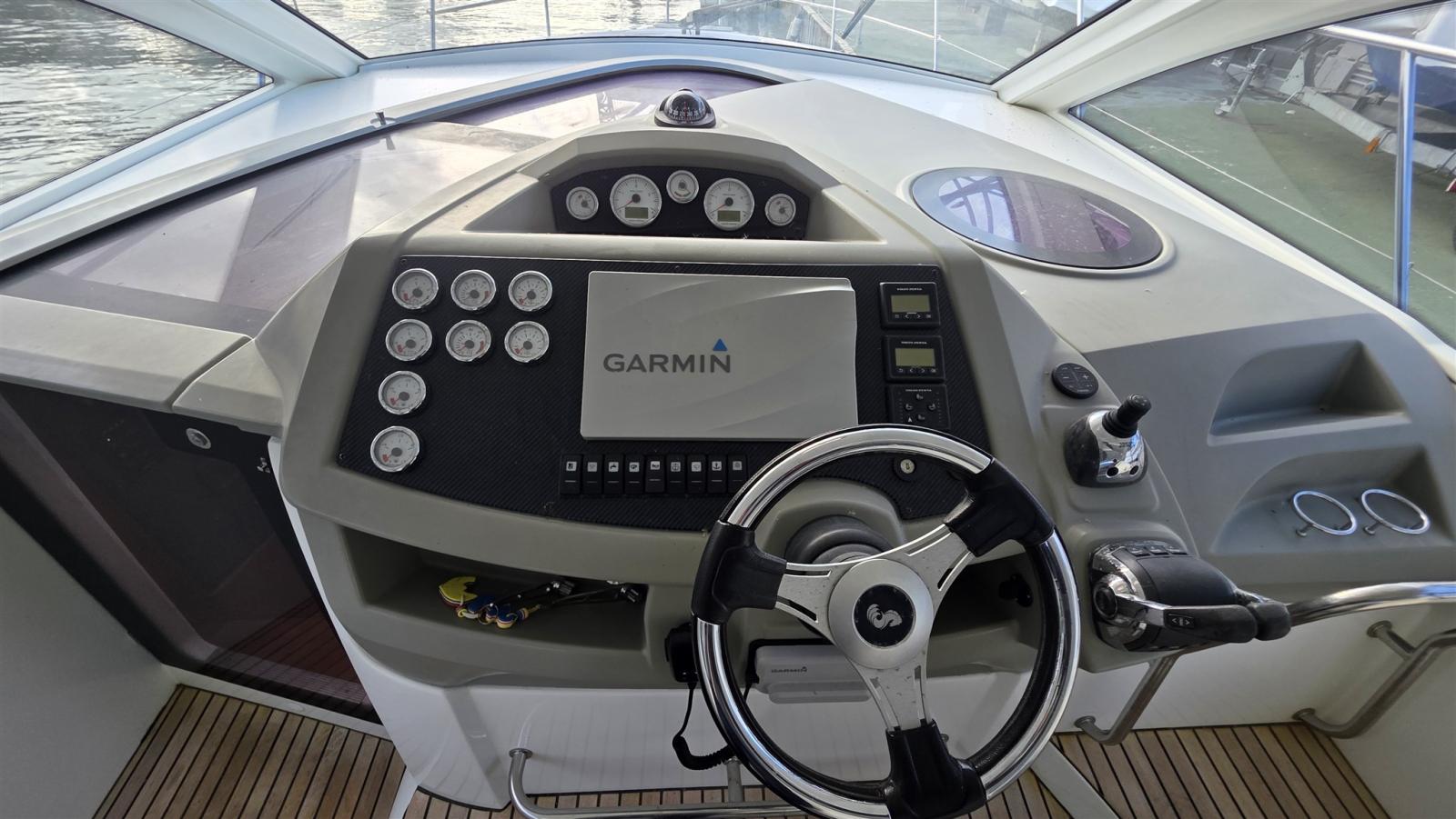 Antenna radar (GARMIN), Comando motori elettronico, Joystick (VOLVO PENTA), Plotter con antenna GPS (GARMIN), Sedile Copilota.