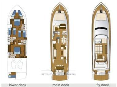 Autoclave, Camminamenti laterali in teak, 2 Caricabatterie (MASTERVOLT Plus 24/110-2), Faro orientabile, Flap idraulici, Gruette per tender su fly, Luci di cortesia, Passerella (IDRAULICA A SCOMPARSA), Piattaforma (TEAK), Porta ingresso, Pozzetto Teak, Ripetitore strumentazione (FLY), Rollbar, Scaletta da bagno, Selle per Tender, Tavolo pozzetto, 2 Winch tonneggio di poppa (Maxwell 1500w).