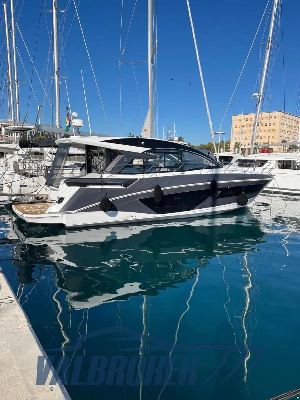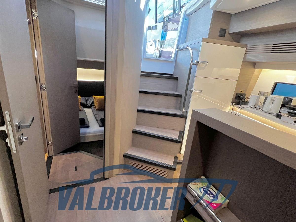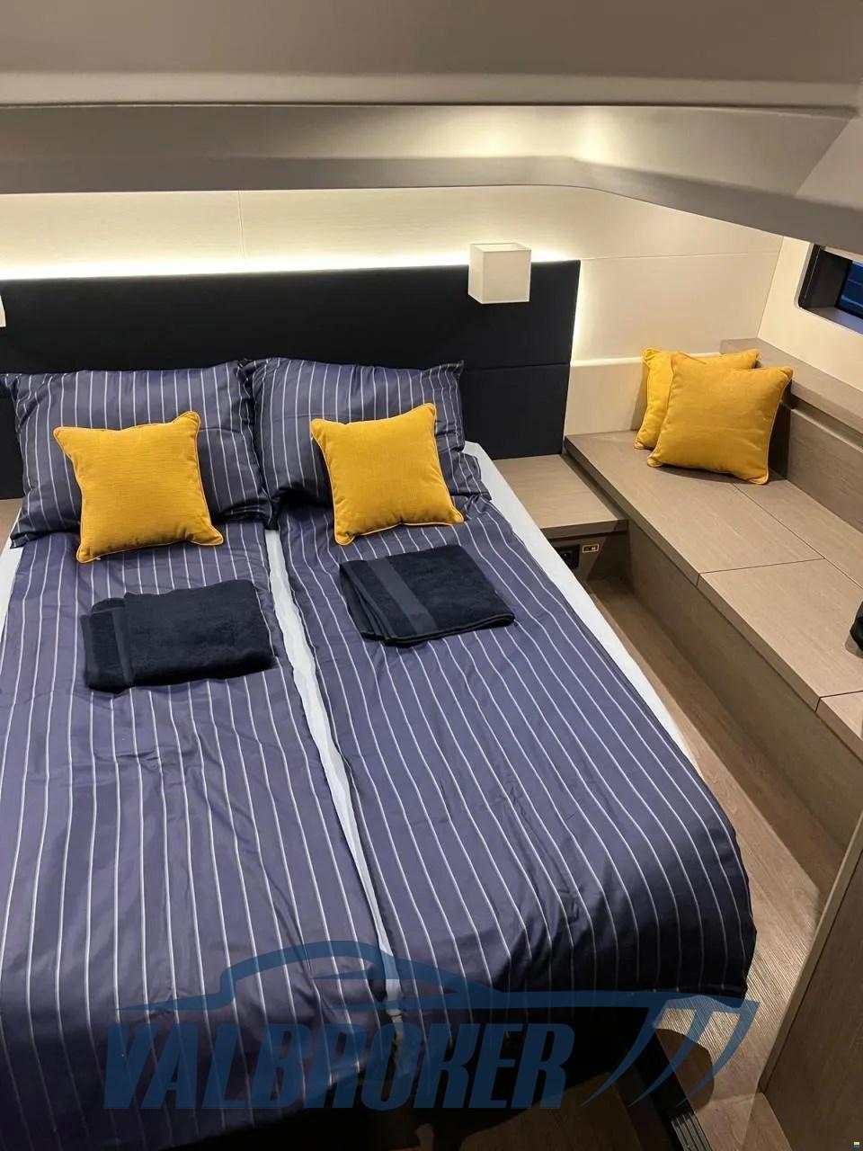 Hard top sportivo ed elegante. Dispone di ampi spazi esterni, tra cui un prendisole di poppa e una spaziosa piattaforma da bagno idraulica. Sottocoperta troviamo tre cabine: matrimoniale a prua, matrimoniale ospiti e cabina con letti a castello.