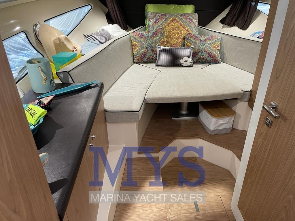 Per questa versione entrofuoribordo della Key Largo 34, Sessa Marine ha studiato un’ergonomia centrata sulla vita di bordo nella zona poppiera. Il Key Largo 34 entrofuoribordo vanta, infatti, una plancetta di poppa eccezionalmente larga che accoglie ospiti e bambini in tutta sicurezza, un prendisole che può diventare ancora più grande ribaltando lo schienale del divano, un grande cockpit con tavolo centrale trasformabile e una comoda zona cocktail dotata di un mobile cucina.