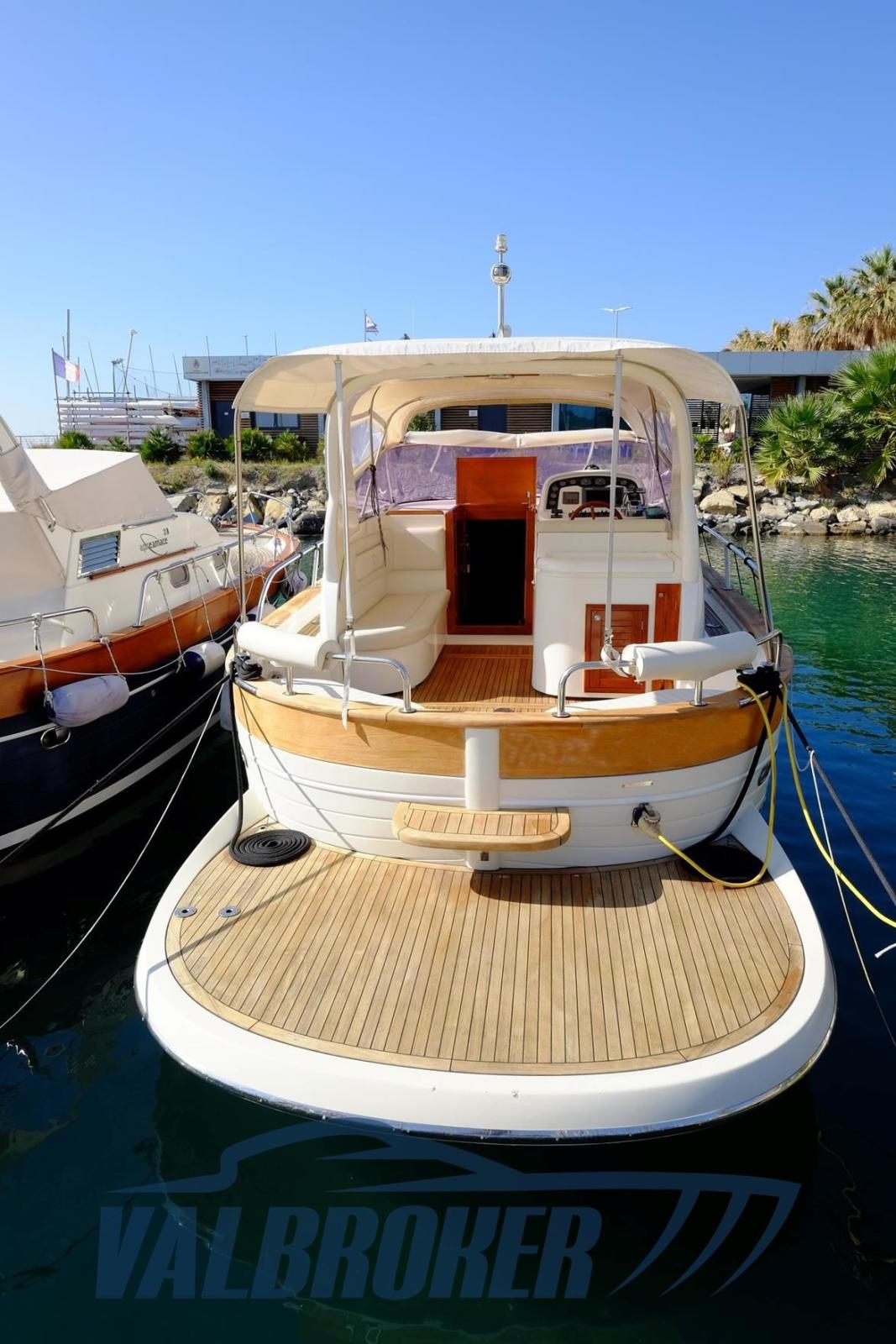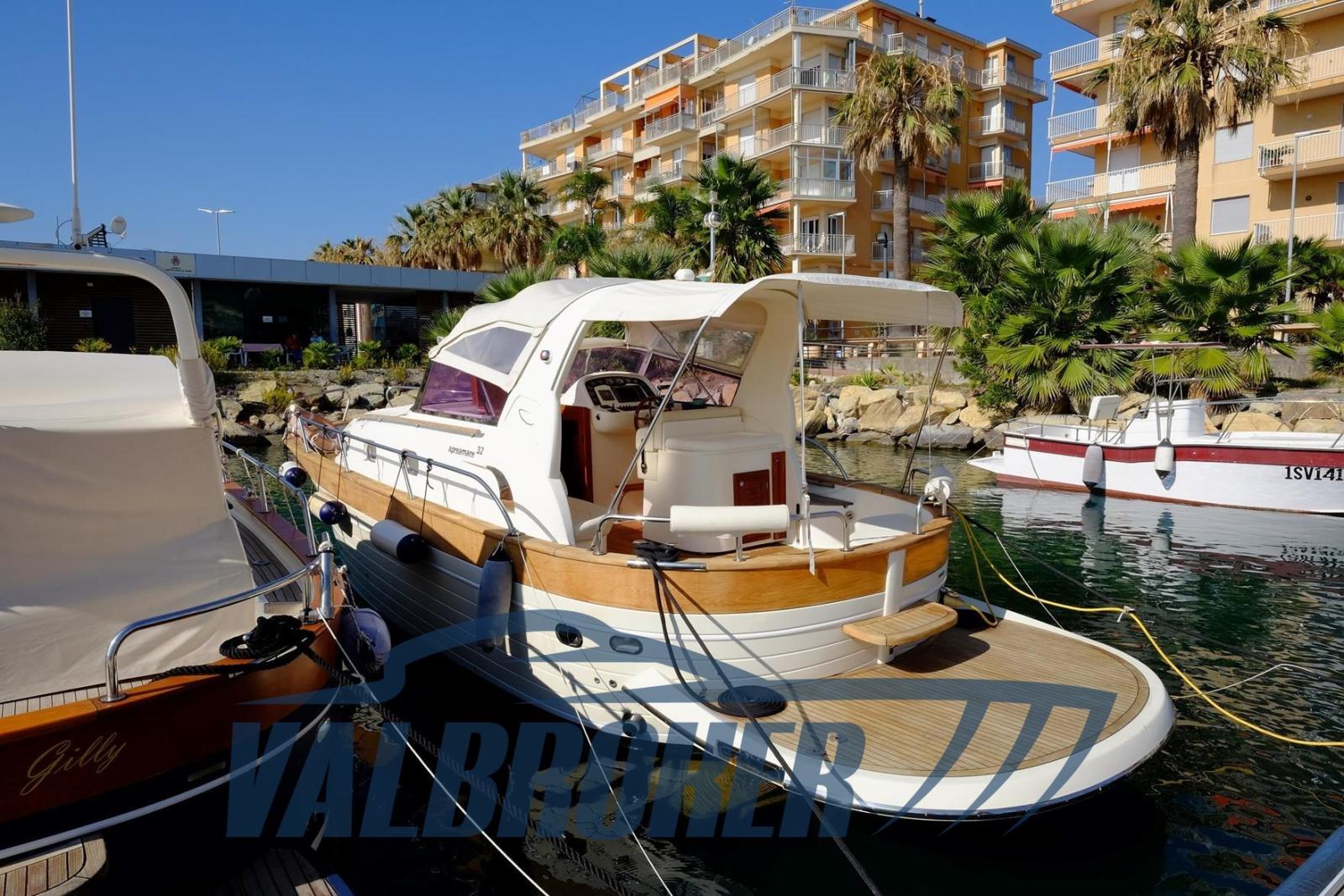 Apreamare 32 Confort, imbarcazione in perfetto stile mediterraneo, dalle linee esterne morbide e sinuose, ma dal carattere sportivo. Comodo prendisole di prua, utilizzabile anche in navigazione, piattaforma estesa da bagno di poppa in teak. Sottocoperta, ampia cabina di prua in versione open space, con spazi di stivaggio che garantiscono un’ottima vivibilità. Motorizzato 2x Cummins QSD 2.8 da 220HP turbo diesel in linea d'asse. Natante non targato.Venduto da noi all'attuale proprietario. 2022: nuova pompa acqua mare motore sinistro. 2024 tagliando motori.2025: sostituzione turbina motore sinistro, Rimozione e pulizia intercooler destro e sinistro.
