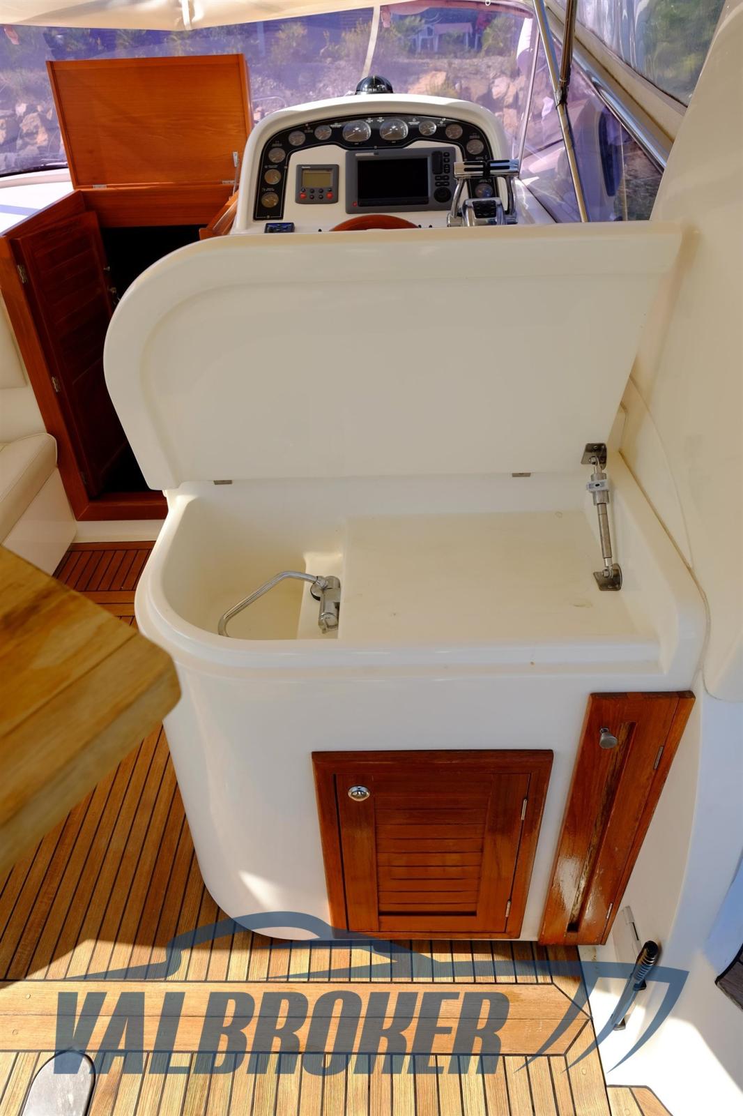 Autoclave, Camminamenti laterali in teak, Elica di prua - bow thruster (vetus), Lavandino nel Pozzetto, Piattaforma (teak allungata), Pozzetto Teak, Rollbar, Salpa Ancore Elettrico, Tavolo Salone Abbattibile.