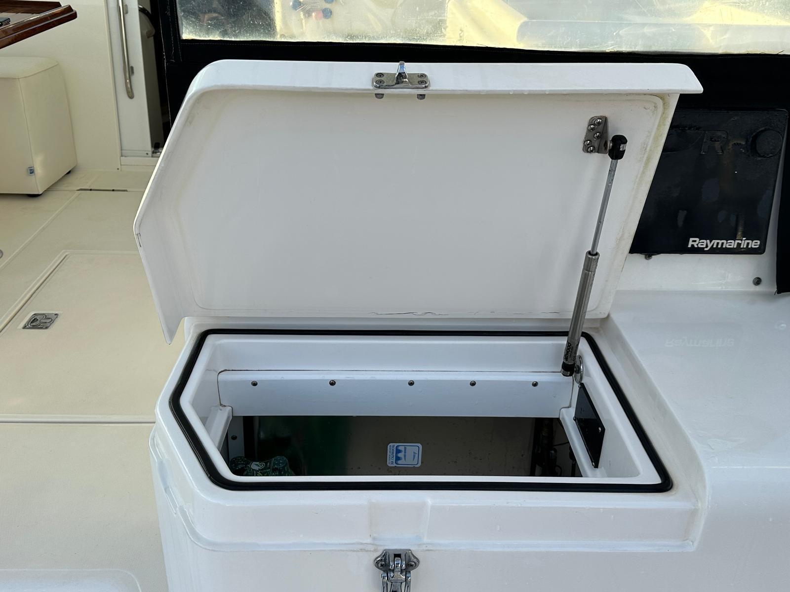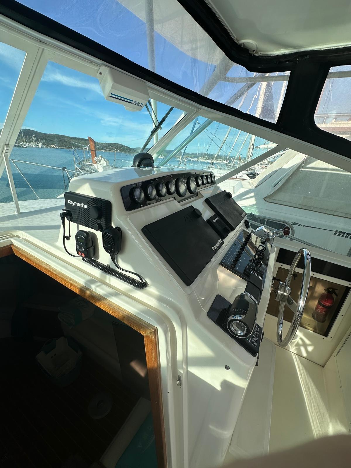 Angolo barra, 3 Comando motori elettronico (manette elettroniche), Display, Ecoscandaglio (sina 2Kw), 3 Pilota automatico (2 digitale Raymarine - 1 automatico portatile), 4 Plotter (Raymarine Axiom 12" con funzione Radar), 4 Plotter con antenna GPS, Radar (24 mi Raymarine), 2 Radio VHF (48 mi Raymarina).