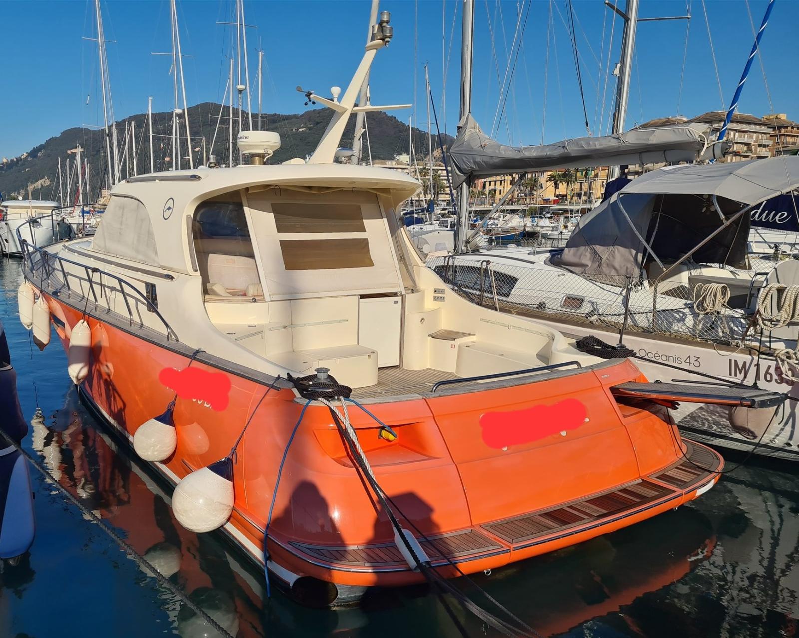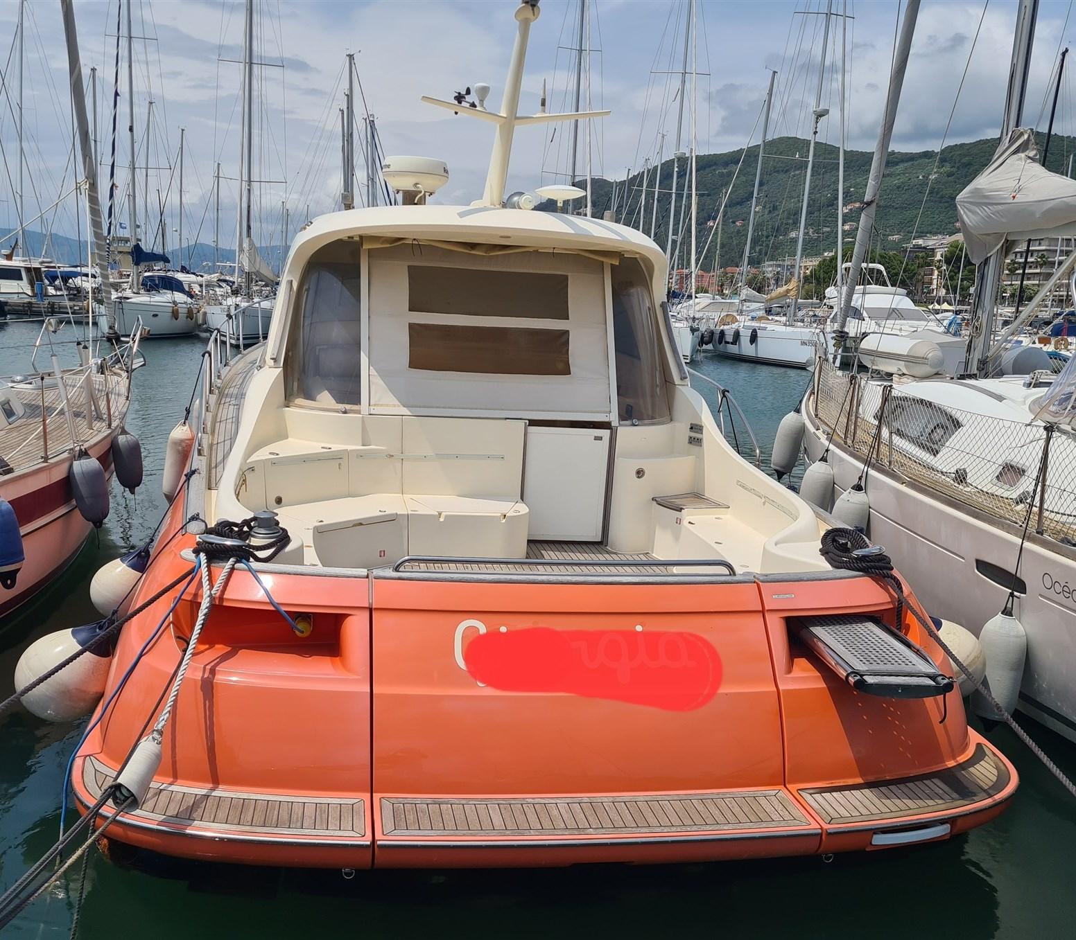 Allarme motore, Allarme sentina, Apertura Vano Motore Elettrica, Autoclave, Camminamenti laterali in teak, Colorazione speciale (corallo), Doccia esterna, Faro orientabile, Flap elettrici, Garage per tender, Hard top, Indicatori Flaps, Luci di cortesia, 2 Luci subacquee (nuove 2022), Passerella (Besenzoni a scomparsa), Piattaforma (teak), Pompa di sentina automatica, Porta ingresso, Pozzetto Teak, Presa 220V banchina, Presa acqua banchina, Raddrizzatore, Salpa Ancore Elettrico, Scaletta da bagno (elettrica a scomparsa), Tavolo pozzetto, Tromba, T-Top (elettrico apribile), Winch tonneggio di poppa.