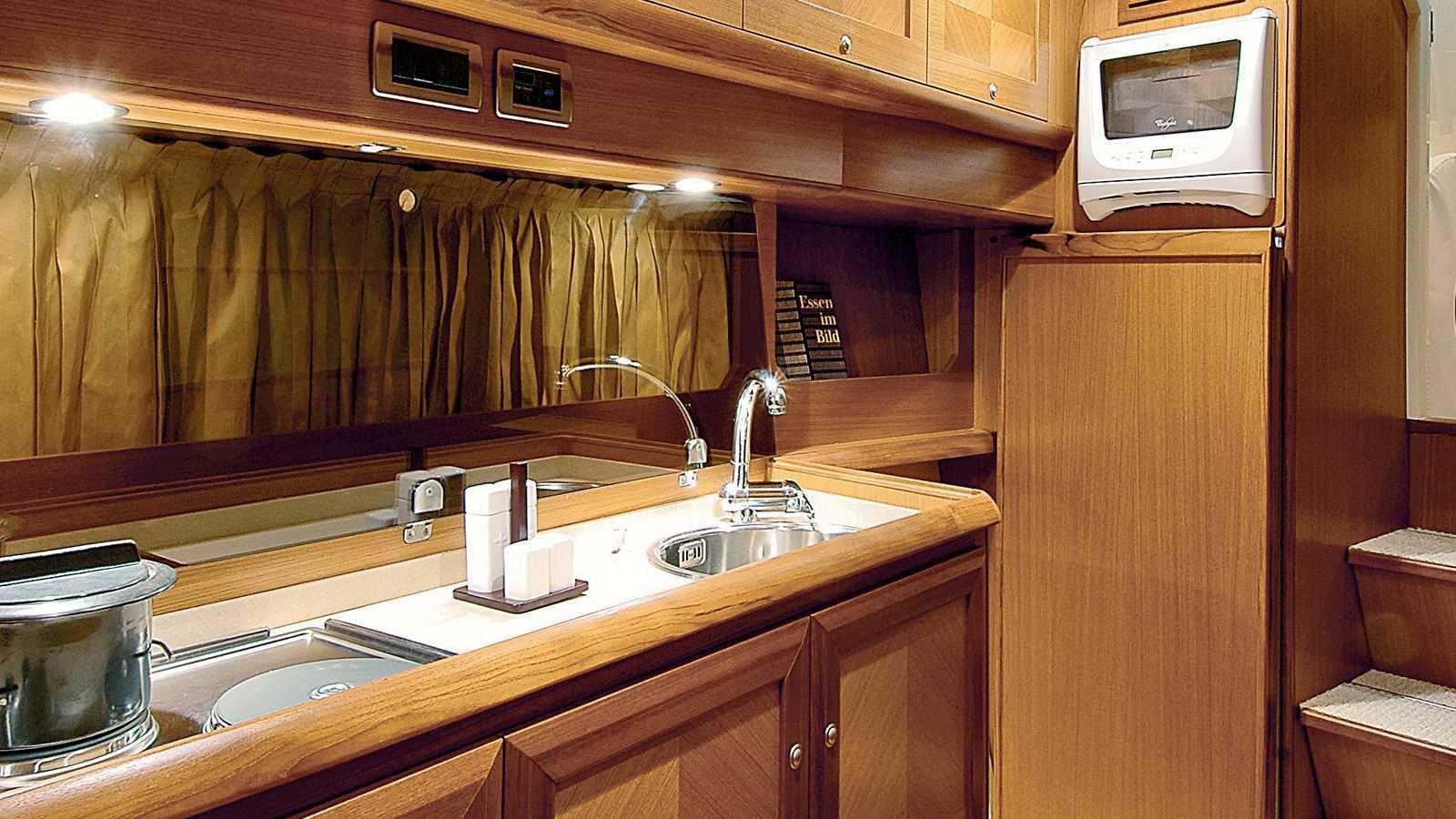 Boiler (30 lt elettrico), Clima reversibile, Impianto acque nere, Pavimento interno in legno, Prese interne 12v, Prese interne 220v, 2 WC marino elettrico.