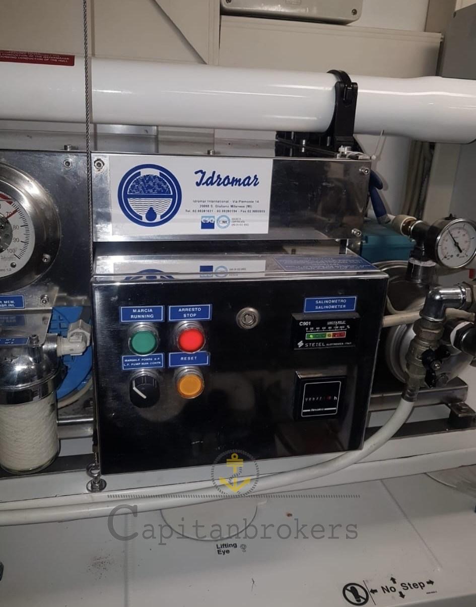 Aria condizionata (caldo/freddo con compressori 2022), Boiler (Impianto di riscaldamento con boiler 2020), Controllo Domotica, Dissalatore (Idromar 160 l/h), Impianto acque nere, Prese interne 12v, Prese interne 220v.