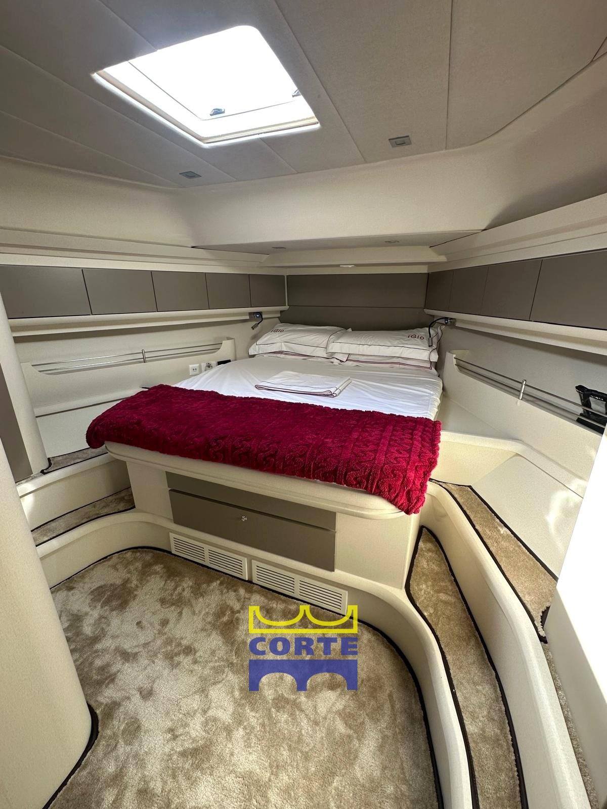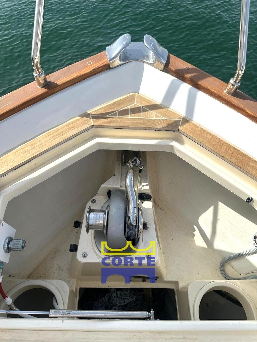 Ampio pozzetto con comoda divano e tavolo a sei posti. Mobile con piastra barbecue e frigo. Accesso alla cabina equipaggio, attrezzata completa di servizi igienici.