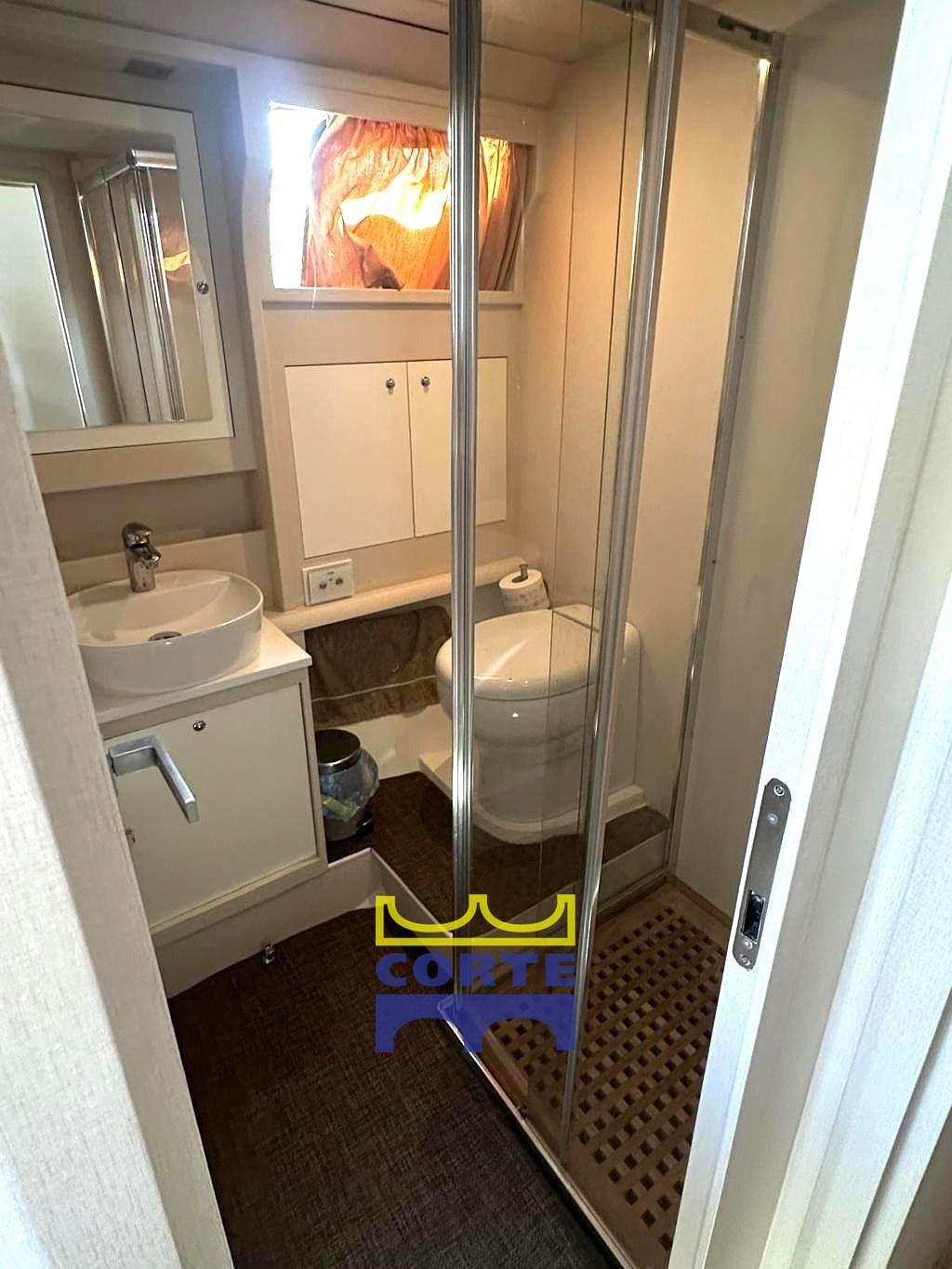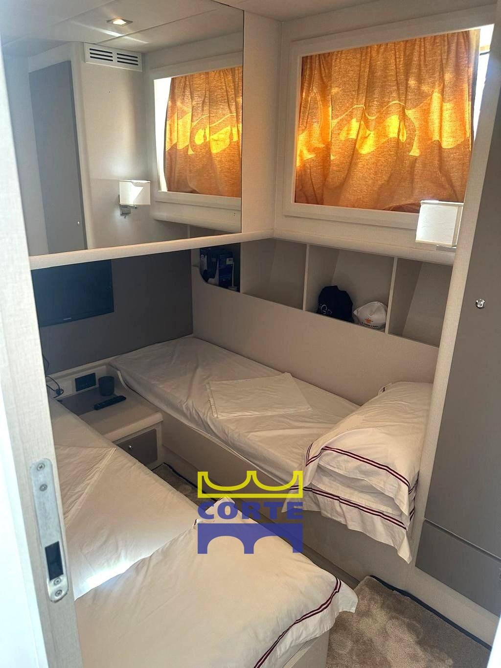 Cabina armatoriale matrimoniale con bagno con box doccia separato.
