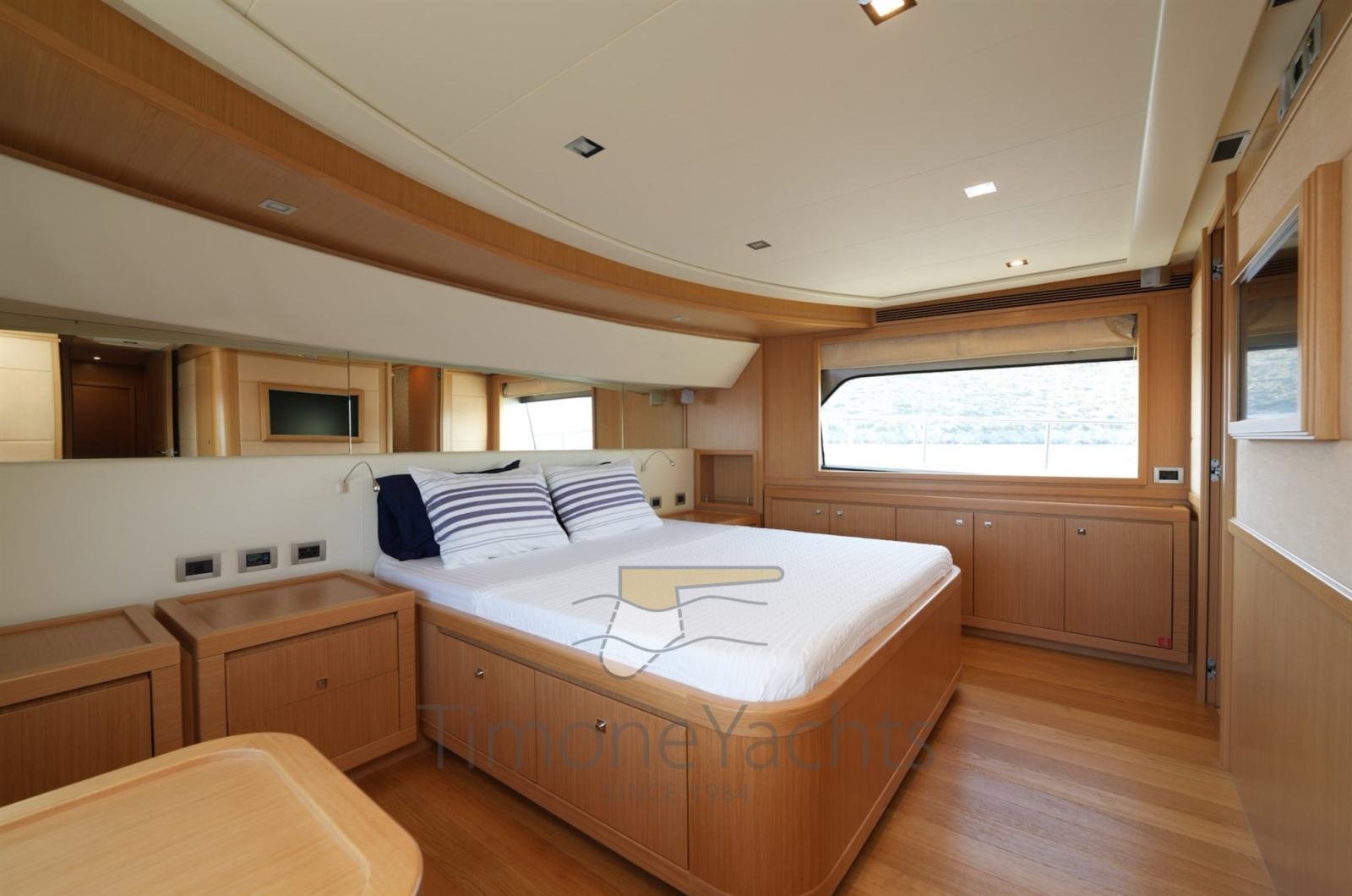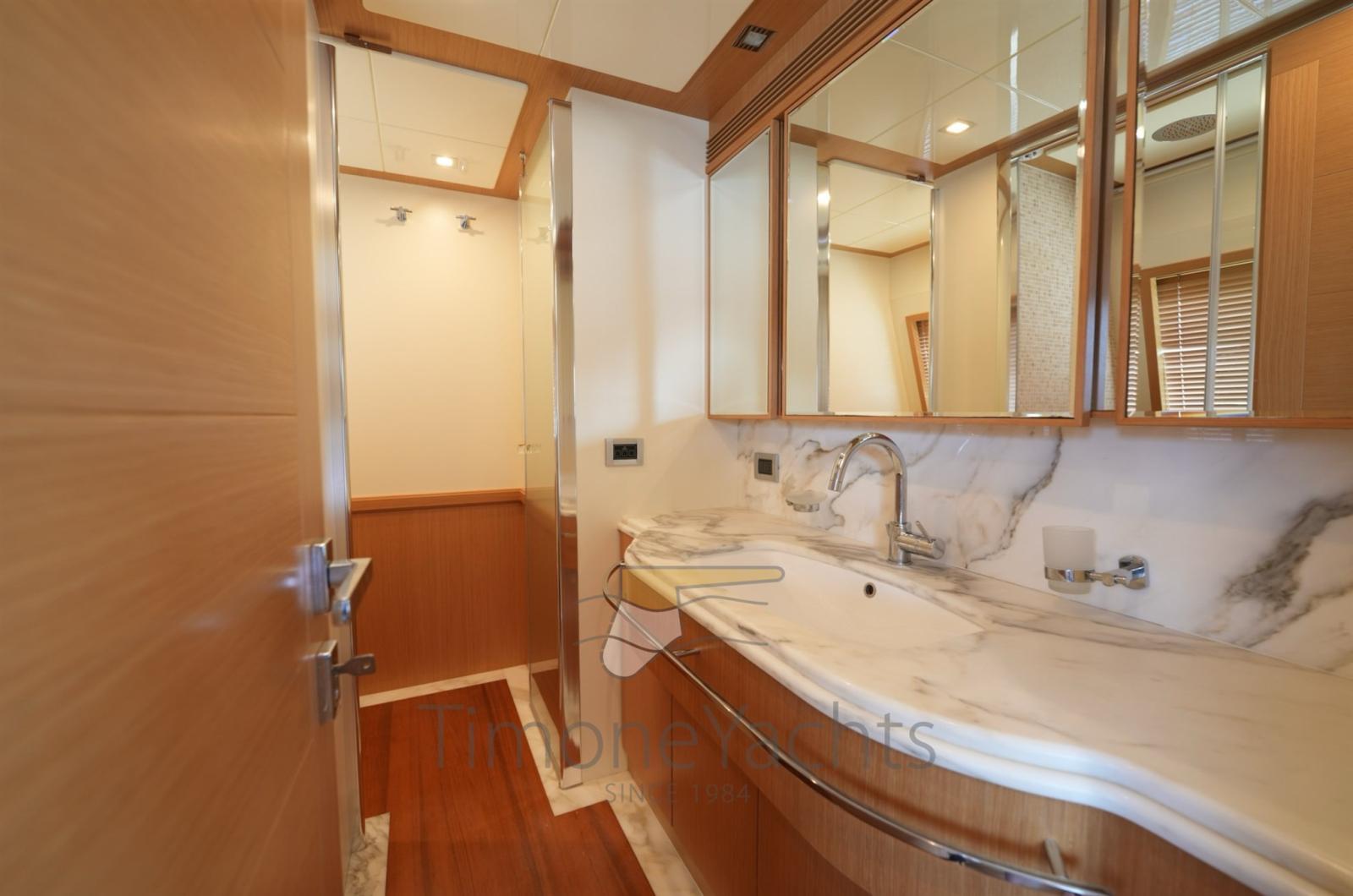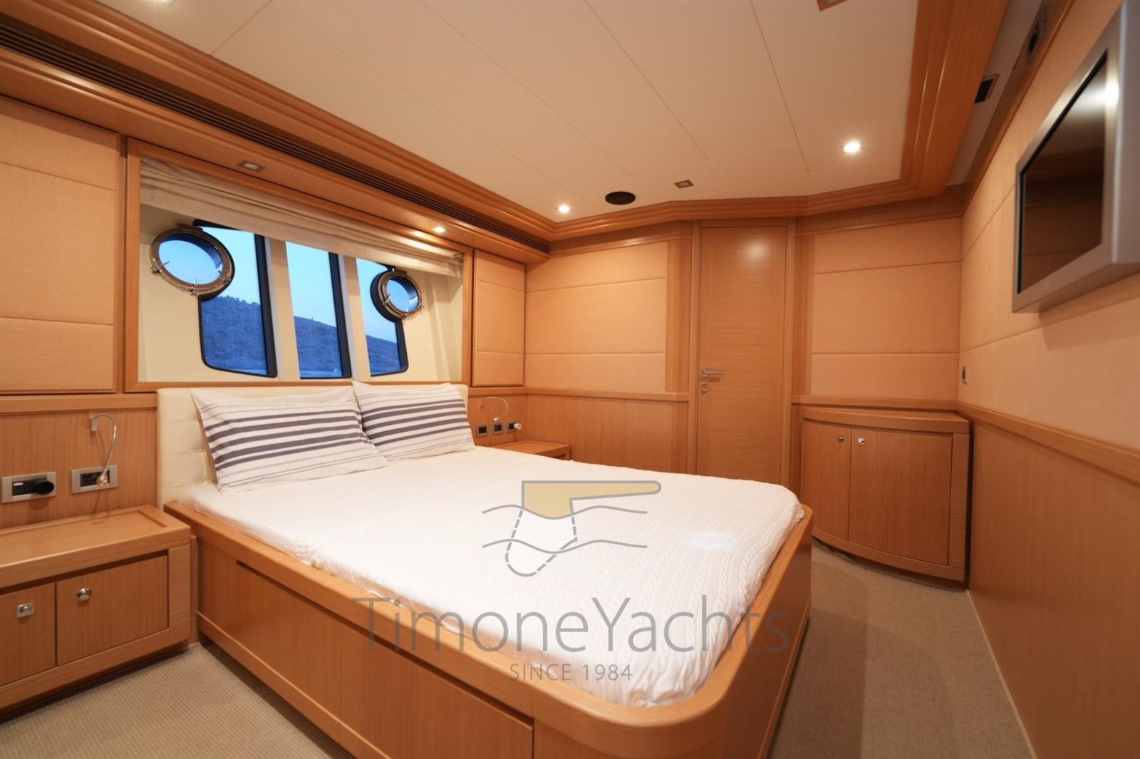Bow thruster -Stern thurster - Tender Zodiac 490/Zodiac 320 - 2 x Outboard Evinrude 70HP/Jojnson - Windlass - Gallery 5 fire - Cockpit covering - Bimini top - Bow sun cushion - Cushions - Fridge - Freezer - Icemaker - Oven - Washing machine - Dish washer - DVD - Stereo sound system - Decoder SKY - Sat tv system - TV n° 8 - Water pump - Shore water plug - Chain counter - Garage - Stern mooring winch - Gangway - CD player - Leather sofa - Waste holding tank - Battery charger Mastevolt - Frige on fly - Grill on fly - Searchlight - Water heater - Teak platform - Teak cockpit - Teak sideways - Teak FLY - Glendening recovery system - Hamann waste treatment system - Teak cockpit + fly table - Salon wood floor - Nr. 2 additional mooring stations with tiller - Nr. 2 Gyro zero speed stabilizers.