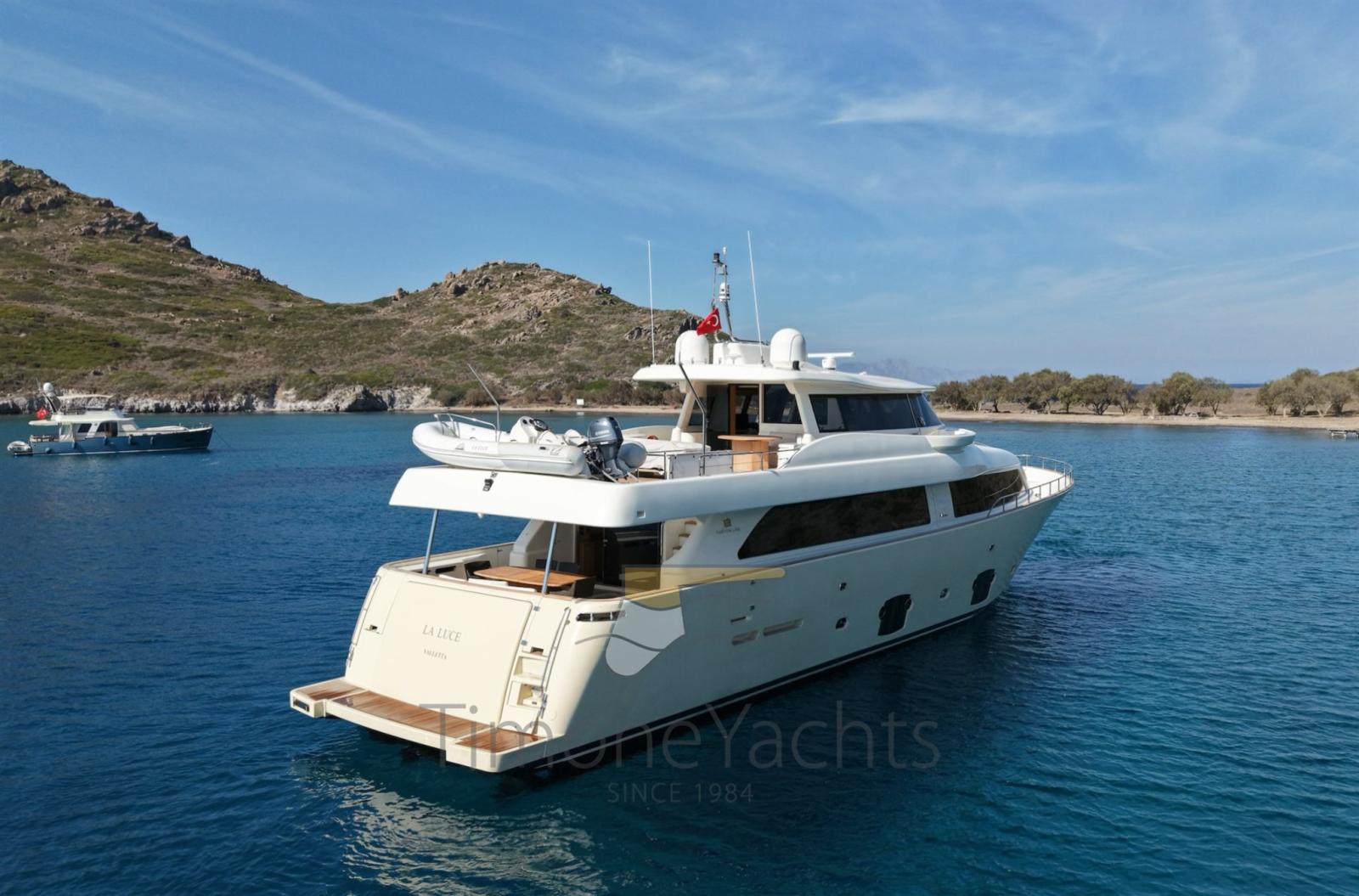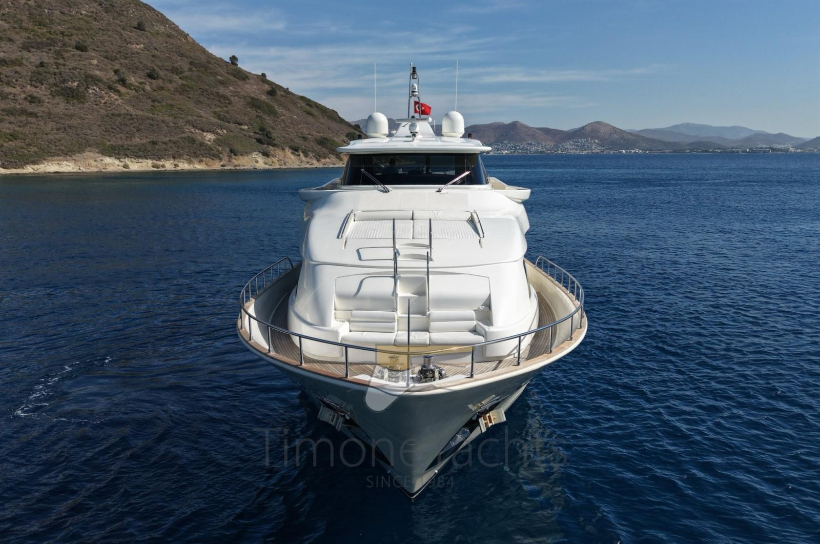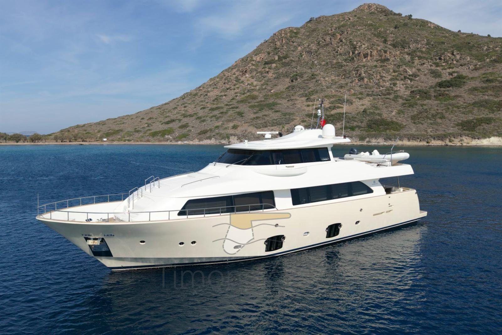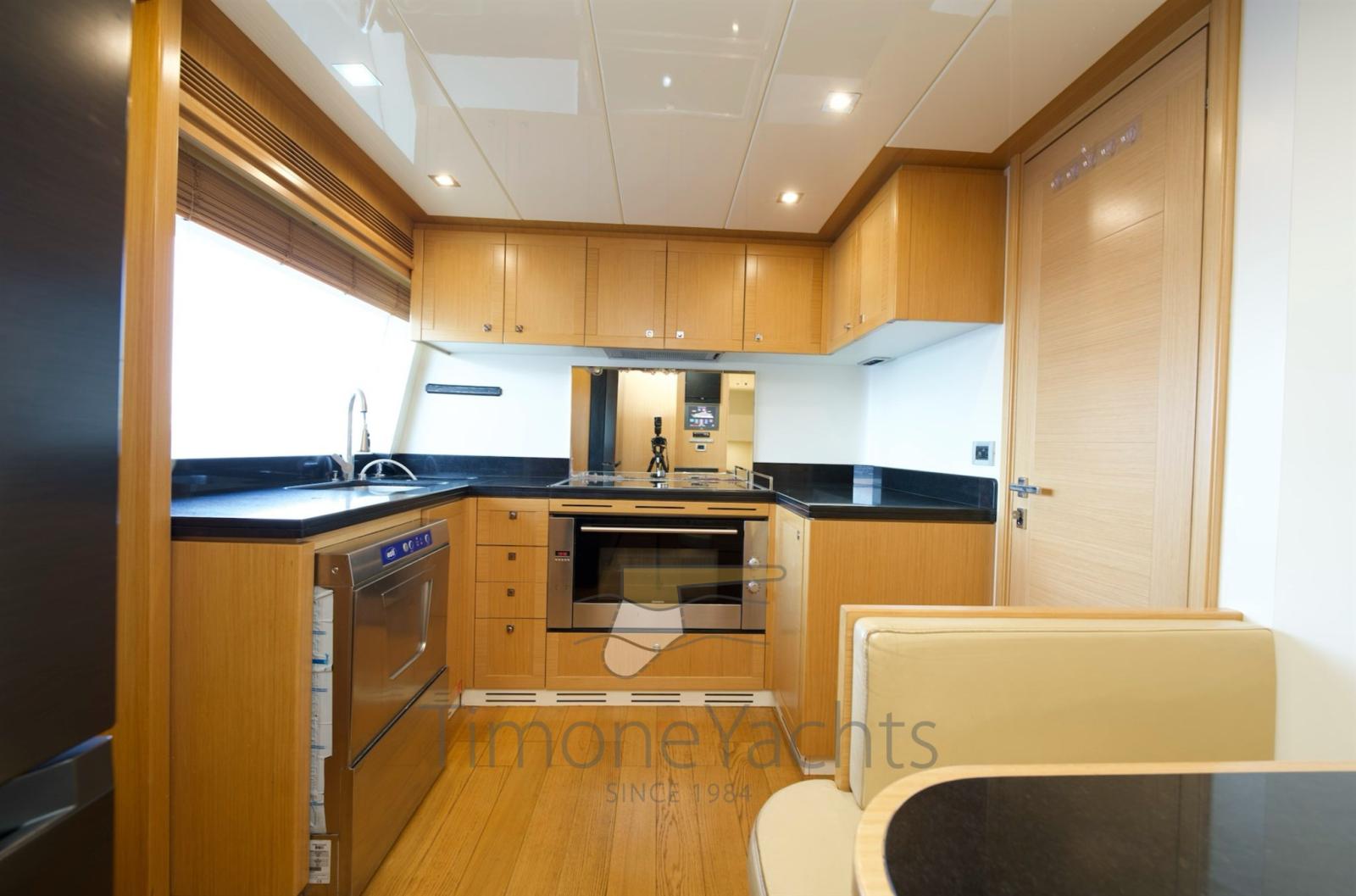 Bow thruster -Stern thurster - Tender Zodiac 490/Zodiac 320 - 2 x Outboard Evinrude 70HP/Jojnson - Windlass - Gallery 5 fire - Cockpit covering - Bimini top - Bow sun cushion - Cushions - Fridge - Freezer - Icemaker - Oven - Washing machine - Dish washer - DVD - Stereo sound system - Decoder SKY - Sat tv system - TV n° 8 - Water pump - Shore water plug - Chain counter - Garage - Stern mooring winch - Gangway - CD player - Leather sofa - Waste holding tank - Battery charger Mastevolt - Frige on fly - Grill on fly - Searchlight - Water heater - Teak platform - Teak cockpit - Teak sideways - Teak FLY - Glendening recovery system - Hamann waste treatment system - Teak cockpit + fly table - Salon wood floor - Nr. 2 additional mooring stations with tiller - Nr. 2 Gyro zero speed stabilizers.