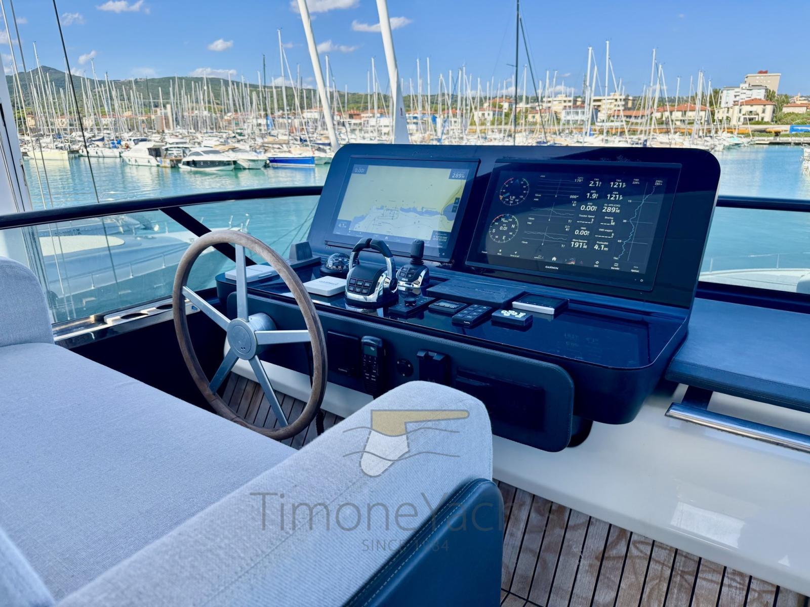 AIS, Angolo barra, Antenna radar, 3 Comando motori elettronico, Computer di bordo, Contametri catena, 3 Display (Garmin da 22 Pollici), DSC vhf, 3 Joystick, Plotter con antenna GPS, Sistema di posizionamento dinamico, Sonar.