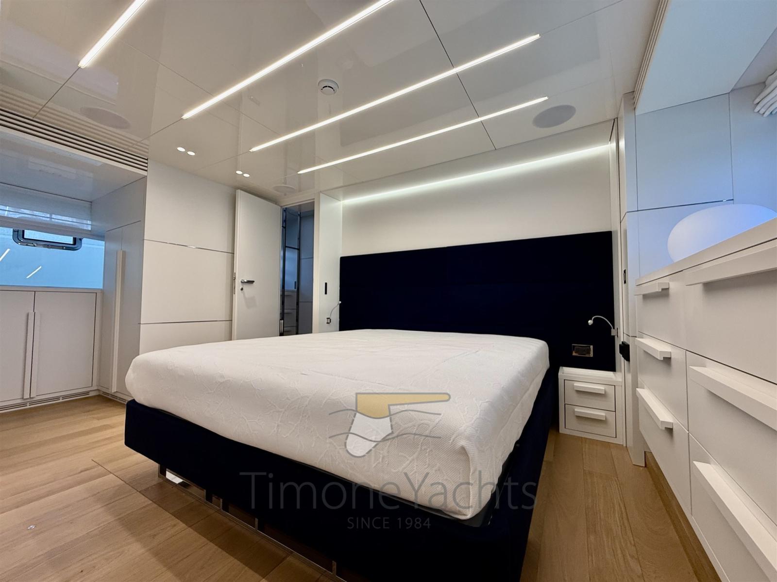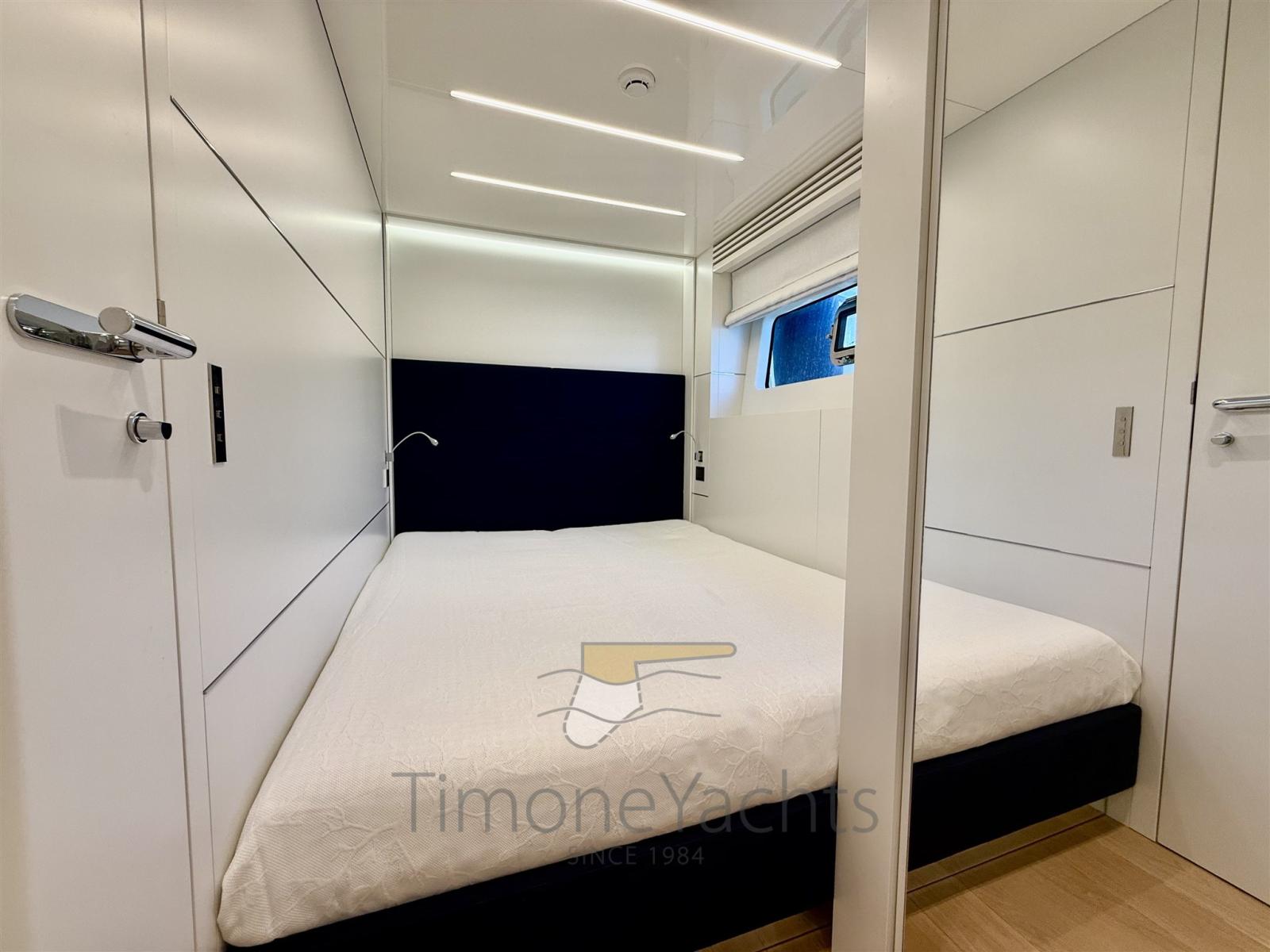 BBQ/ Grill, Boiler, Clima reversibile, Dissalatore, Pavimento interno in legno, Prese interne 12v, Prese interne 220v, Serbatoio Acque Nere, 5 WC marino elettrico (Uno per ogni cabina + Day toilet).