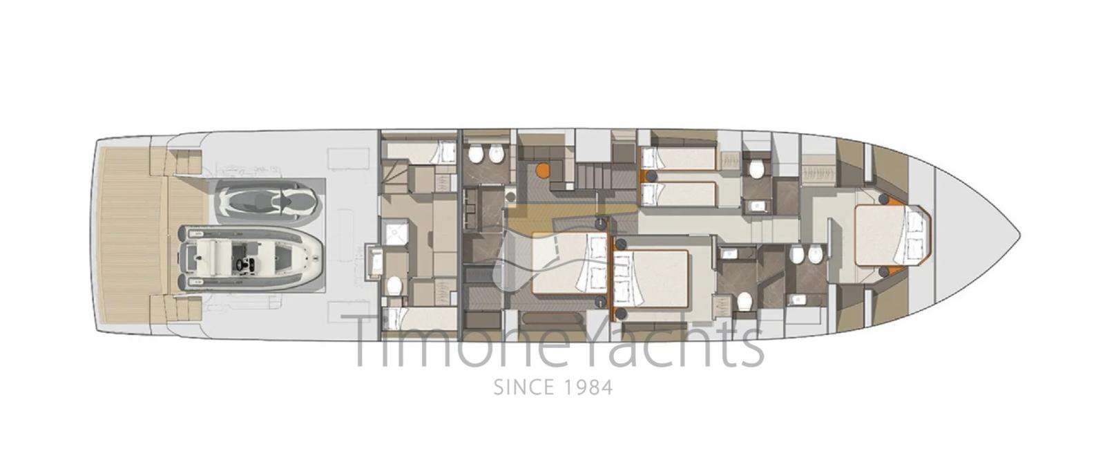 Davvero immensa la plancetta di poppa, cosi come il tender garage, che può ospitare tender + jetski. Strepitoso il fly, con mobilio in stile villa.