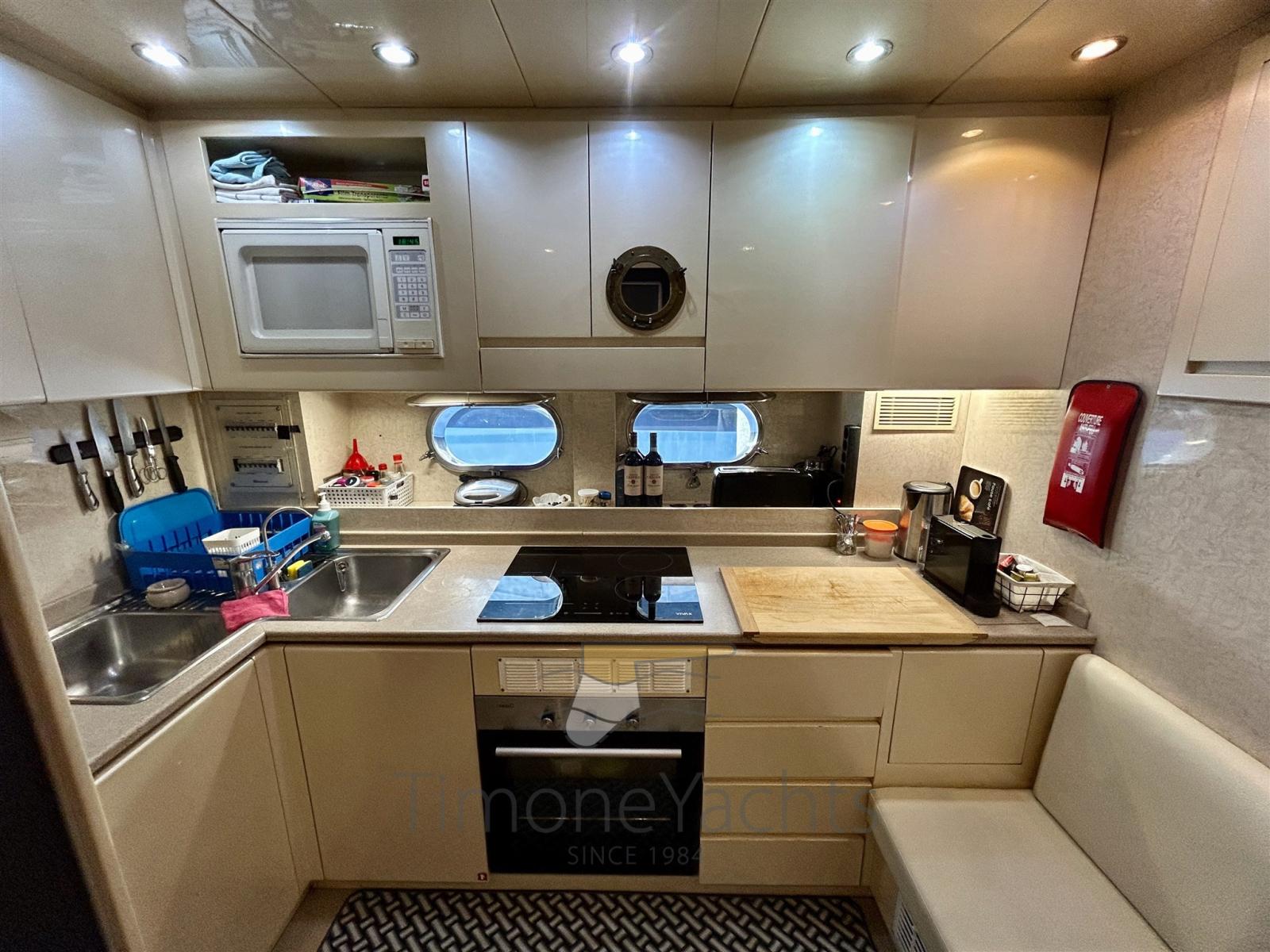 Boiler, Cassaforte, Clima reversibile, Dimmer per Luci, Dissalatore, Impianto acque nere, Pavimento interno in legno, Prese interne 12v, Prese interne 220v, Serbatoio Acque Nere, Telecamera, 4 WC marino elettrico (+ 2 crew).