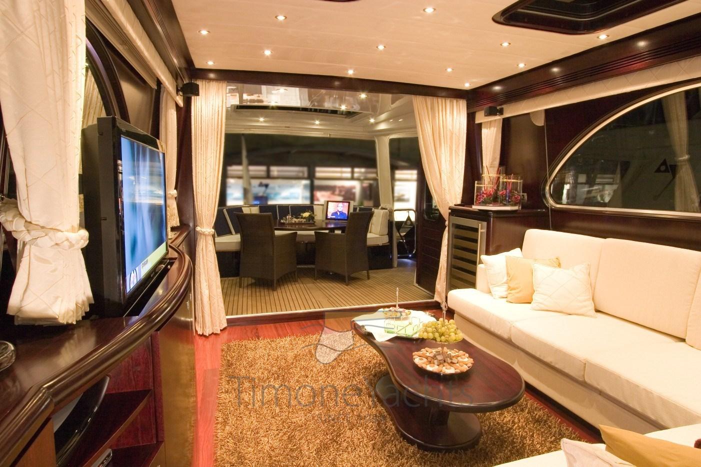 Bitte Abbattibili, Camminamenti laterali in teak, Doccia esterna, Hard top, Impianto antincendio, Lavandino nel Pozzetto, Passerella, Piattaforma (Piattaforma idraulica Hi-low), Presa 220V banchina, Presa acqua banchina, Stabilizzatori (fins), Tavolo pozzetto, Tender, 2 Winch tonneggio di poppa, Winch tonneggio di prua.