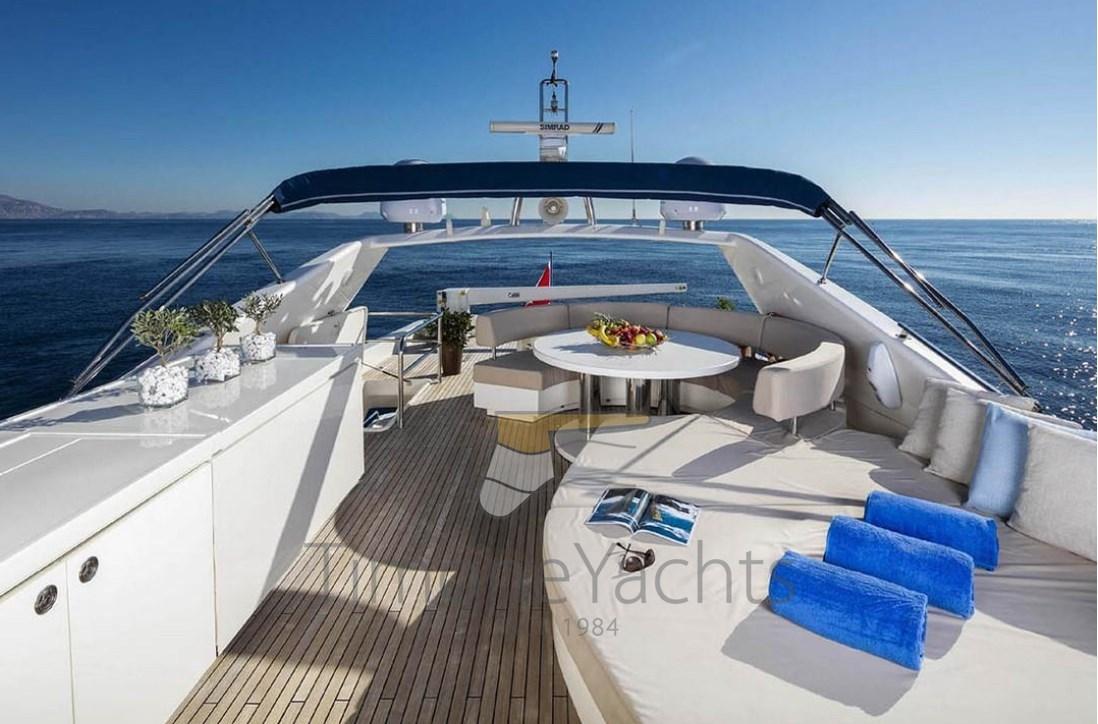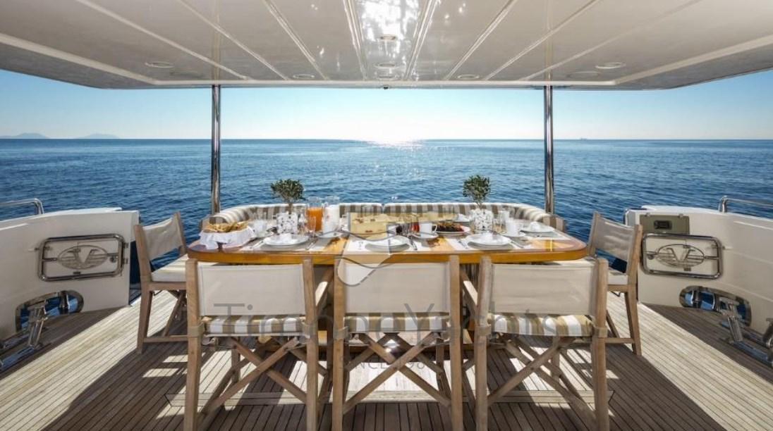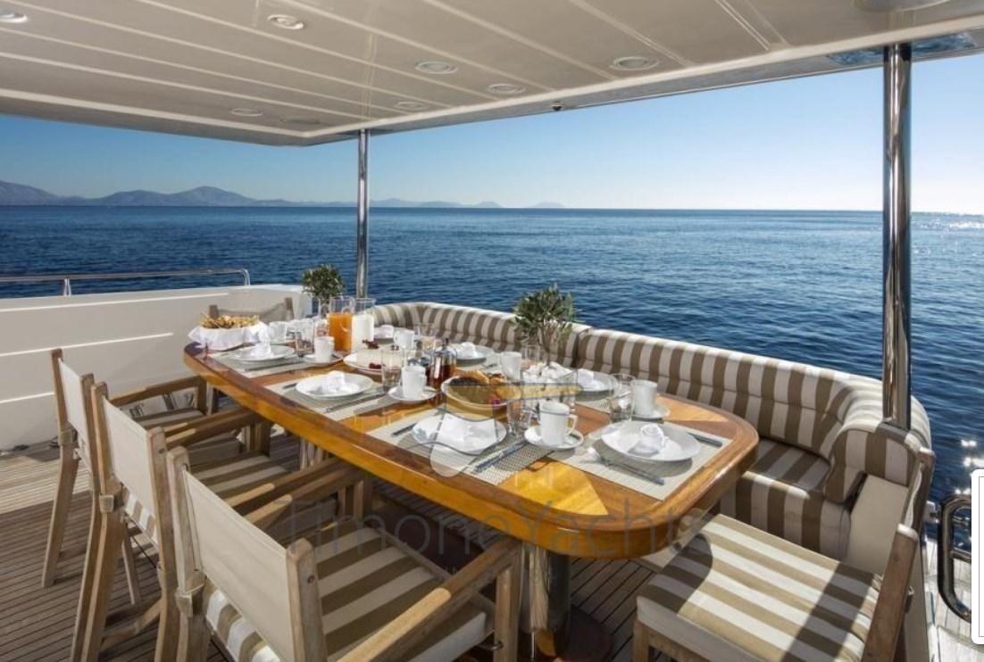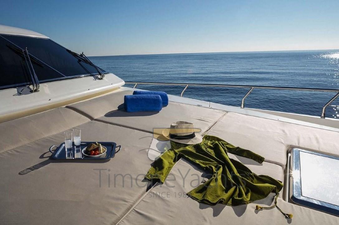 Autoclave, Doccia esterna, Doppia timoneria, Flap idraulici, Gruette per tender su fly, Impianto antincendio, Passerella, Piattaforma, Pompa di sentina automatica, Pompa di sentina manuale, Raddrizzatore, Salpa Ancore Elettrico, Scaletta da bagno, Tender (4.3 m Zar 60 hp).