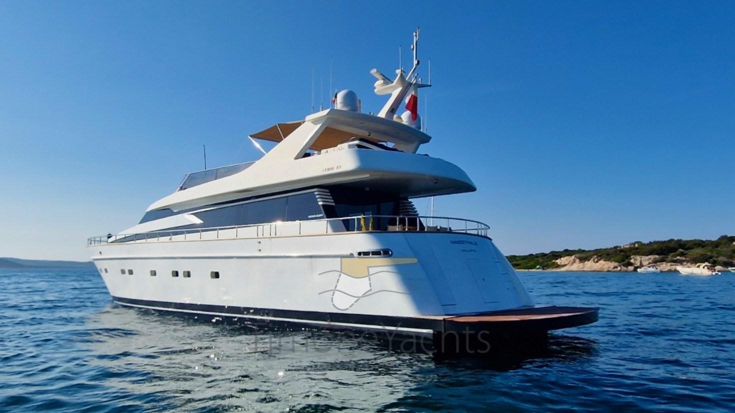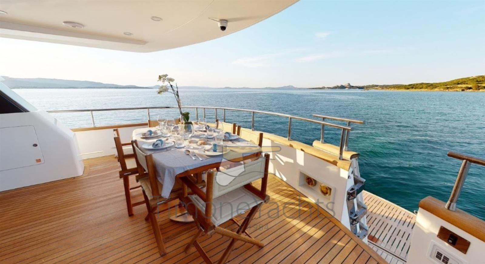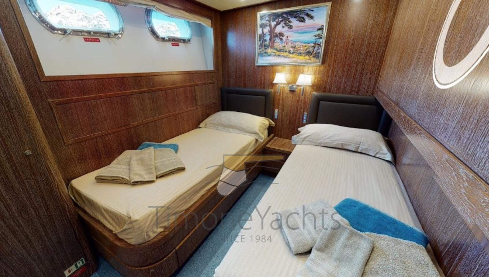 Spectacular fiberglass AKHIR 85, day head on main deck, TRAC fins stabilizers (zero speed + underway), up/down platform astern, jacuzzi on fly. Private Vessel, EU vat paid, pleasure craft. 4 cabins with ensuite.