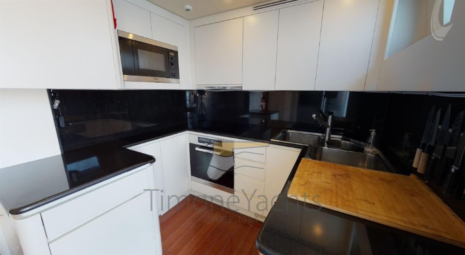 BBQ/ Grill, Boiler, Cassaforte, Clima reversibile, Dimmer per Luci, Dissalatore (200 lt/h), Impianto acque nere, Pavimento interno in legno, Prese interne 12v, Prese interne 220v, Pressarifiuti, Serbatoio Acque Nere, 5 WC marino elettrico (+ crew).