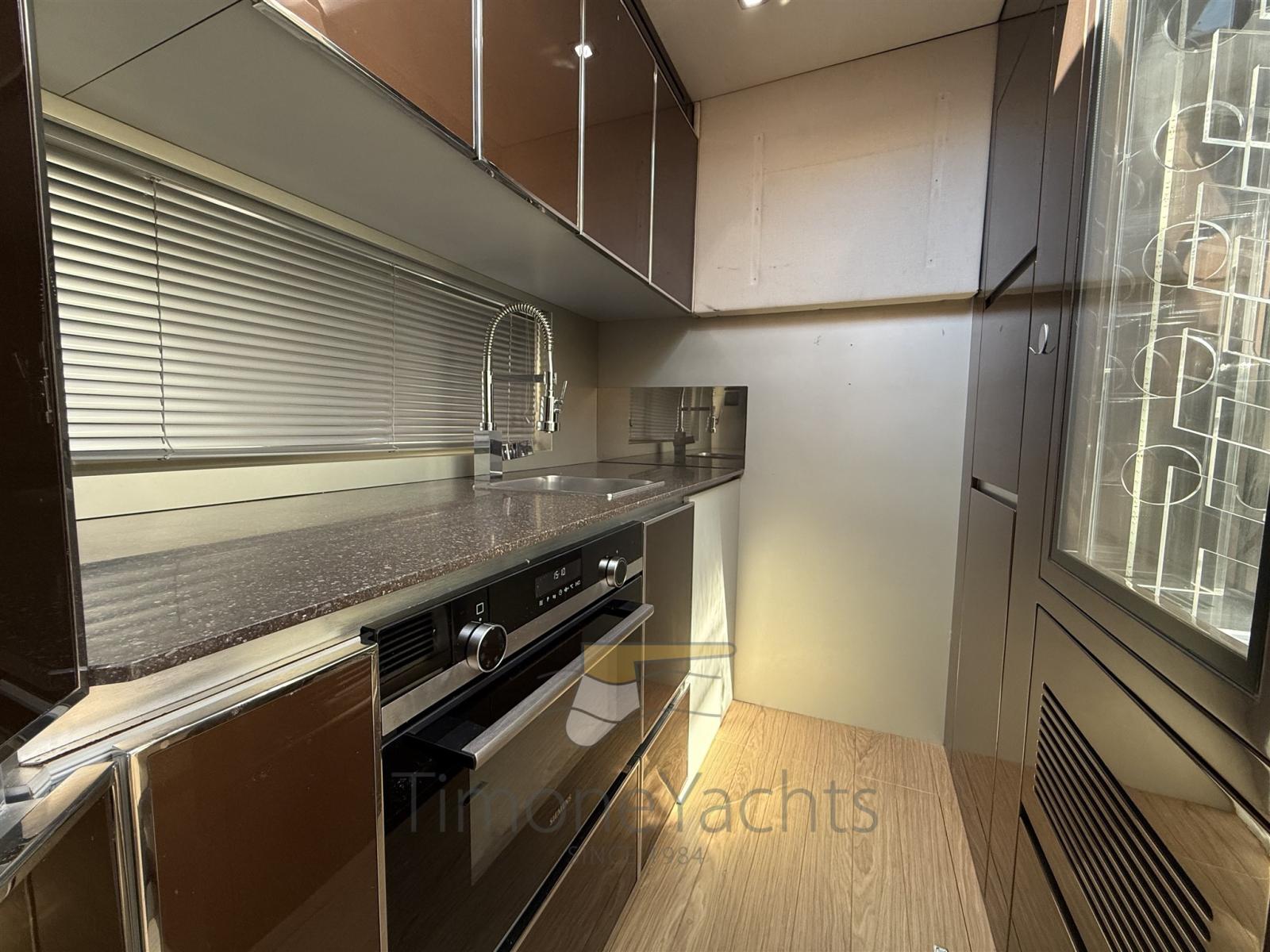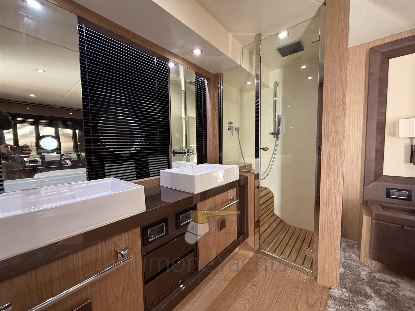 Allarme fumo/gas, Allarme motore, Allarme sentina, Autoclave, Camminamenti laterali in teak, Colorazione speciale, Doccia esterna, Flap elettrici, Hard top, Lavaggio catena, Lavandino nel Pozzetto, Luci subacquee, Passerella, Piattaforma, Ponte in teak, Porta ingresso, Pozzetto Teak, Presa 220V banchina, Presa acqua banchina, Scaletta da bagno, Stabilizzatori (Seakeeper 9), Tavolo pozzetto, Tender, Tientibene con cancelletti, Tromba, Winch tonneggio di prua.
