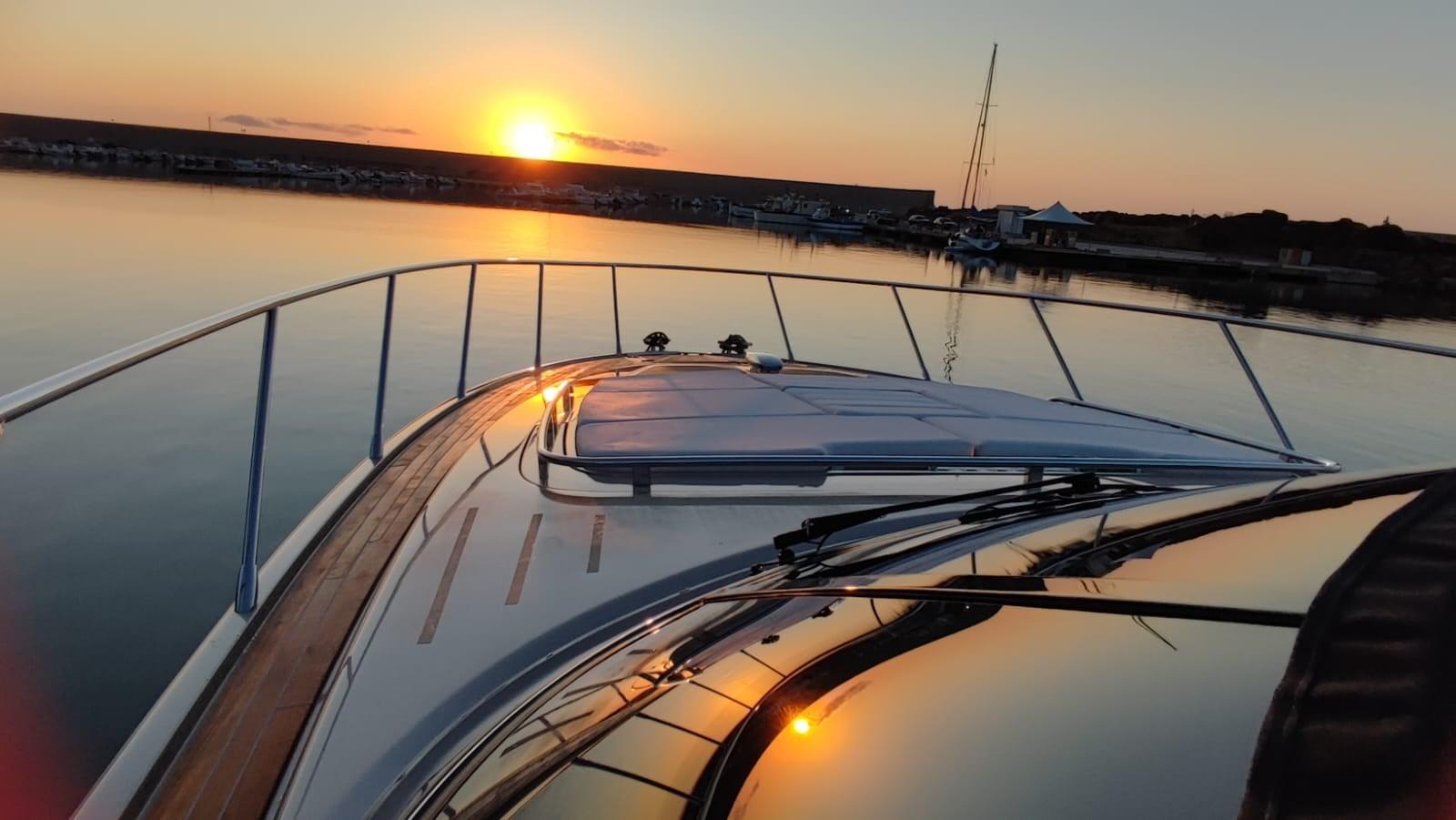 2 Allarme motore, Allarme sentina, Auto Dynamic Trim Interceptor (Humphree), Autoclave, Camminamenti laterali in teak, Cavo corrente di banchina, Colorazione speciale (Oro), Doccia esterna, Fissaggio dell’ancora (Musone rinforzato 2025), Garage per tender, Indicatori Flaps, Lavaggio catena, Lavandino nel Pozzetto, Luci di cortesia, Luci subacquee, Monitor batteria, Motore fuoribordo per tender, 6 Parabordi, Passerella (Besenzoni elettroidraulica a scomparsa), Piattaforma, Pompa di Scarico del Serbatoio Acque Reflue, Pompa di sentina automatica, Pompa di sentina manuale, Pompa Lavaggio Ponte, Ponte in teak, Porta ingresso, Pozzetto Teak, Presa 220V banchina, Salpa Ancore Elettrico, Scaletta da bagno, Selle per Tender, Tavolo pozzetto, Tavolo Salone Abbattibile, Tender, Tientibene con cancelletti, Tromba, Winch tonneggio di poppa, Winch tonneggio di prua.