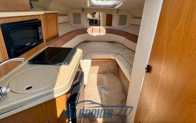 Dinette trasformabile in letto matrimoniale a V a prua, cuccetta matrimoniale a poppa, bagno privato con porta, cucina. Passaggio centrale per andare a prua, Sempre manutentata e aggiornata, tenuta in secca in rimessagio nel periodo invernale.