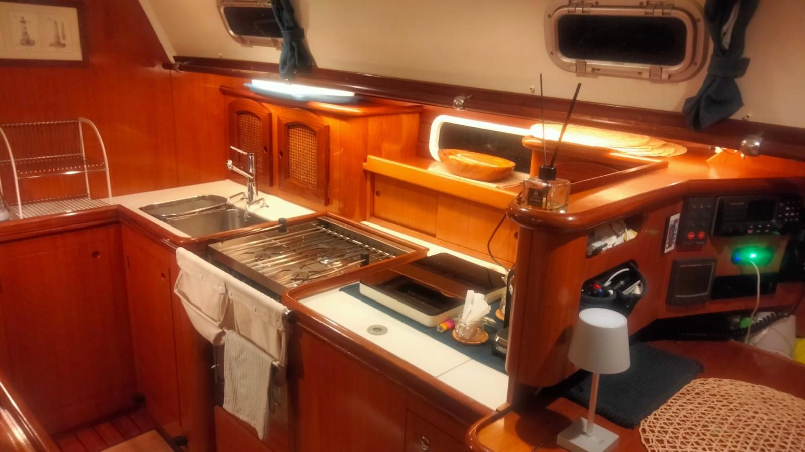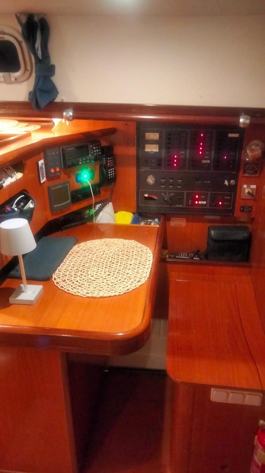 Barometro, Cassetta di pronto soccorso, Dotazioni di sicurezza oltre 50 miglia, Salvagente anulare con cima munita di boetta luminosa, Zattera di salvataggio (da rinnovare).