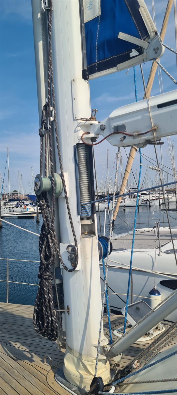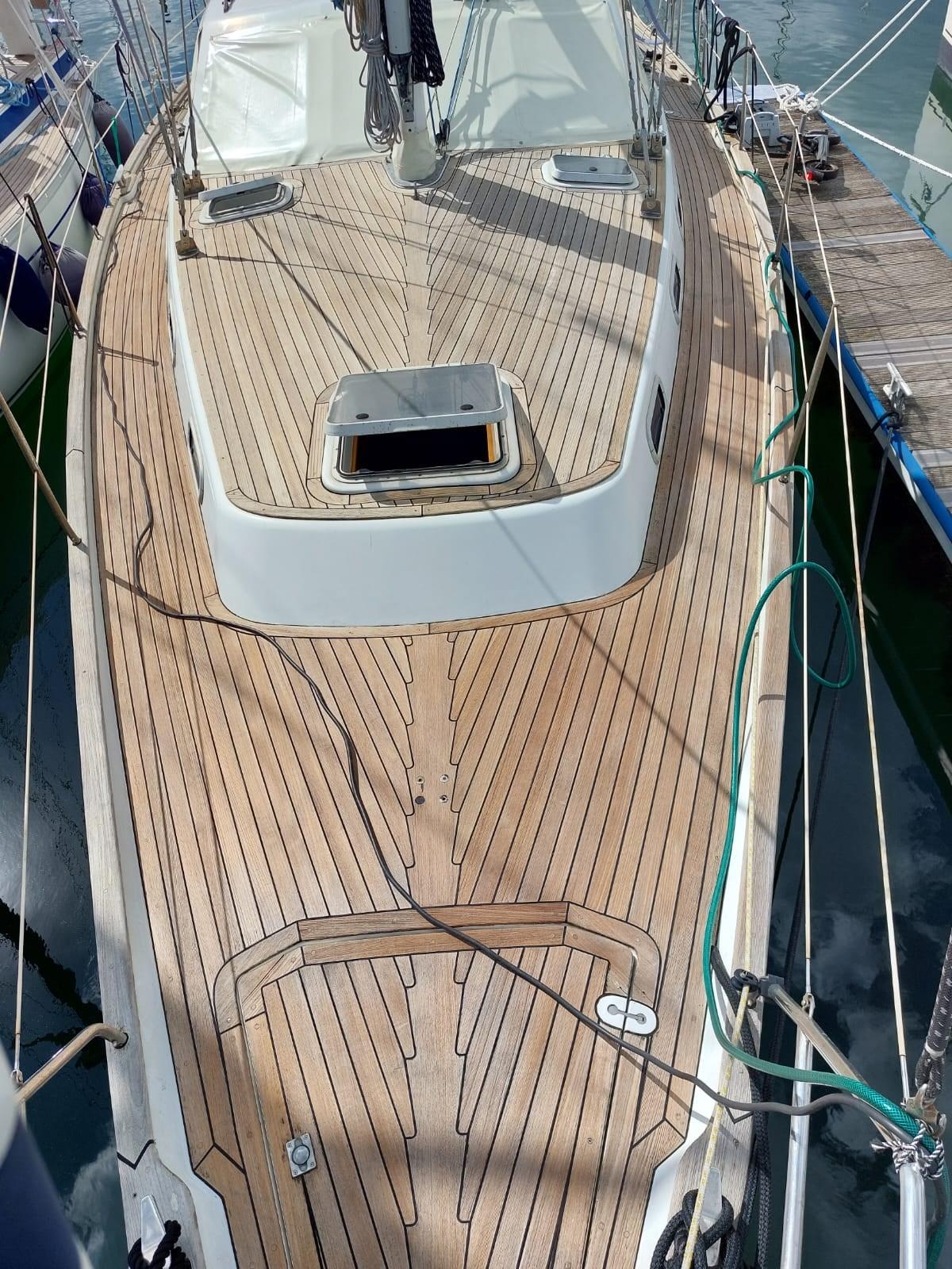 REFIT GENERALE 2021/2023 Disalbero e revisione con sostituzione pulegge, impianto elettrrico - sostituzione di tutto il sartiame e manovre correnti - revisione generatore Onan 7,5Kw (sbarcato scambiatore e sostituiti tutti i tubi in gomma ) - salpa ancora Lofrans Falkon revisione totale - smontaggio pala timone per nuova resinatura (Franchini ) - revisione losca timone - revisione rulla fiocco Bamar - revisione e lavaggio vele (veleria Zattoni ) revisione e cromatura Winches Antal - revisione tenditore paterazzo Nemo con sostituzione 80% componenti interni - revisione pompe (aria condizionata, alta e bassa pressione dissalatore ) installato isolatore galvanico - installato valvola sicurezza gas e comando elettrico - equilibratura elica - refit completo sala macchine (tubi, antirombo, sentina ) refit impianto elettrico sala macchine - refit completo cablaggio bonding (messa a terra prese a mare ) - installato limitatore di sovratensione per antenna Vhf - installato filtro acqua dolce su rubinetto cucina - lavaggio serbatoi acqua dolce (1000l ) - revisione frigorifero e freezer, sostituzione serpentina freezer, tubi e ricarica gas compressori. - revisione motorino avviamento, sostituzione elettromagnete - verniciatura gavoni, sentine, travi - pulitura e lucidatura pagliolato - gran parte della impiantistica elettrica rinnovata e documentata in formato digitale - vernicitaura cornici interne e revisione oblo' Lewmar - nuova ancora Rocna + catena (10mm) - batterie nuove (180ah , 240ah ) nuovo boiler rettangolare 20l - nuovo VHF DSC B&G V60 con GPS e AIS integrato con possibilita' di handset wireless - nuovo radio stereo FUSION (USB) settorizzazione ambienti,ricevitore VHF, 6 nuovi altoparlanti - sostituzion prese a mare - carena portata a zero + trattamento antiosmosi