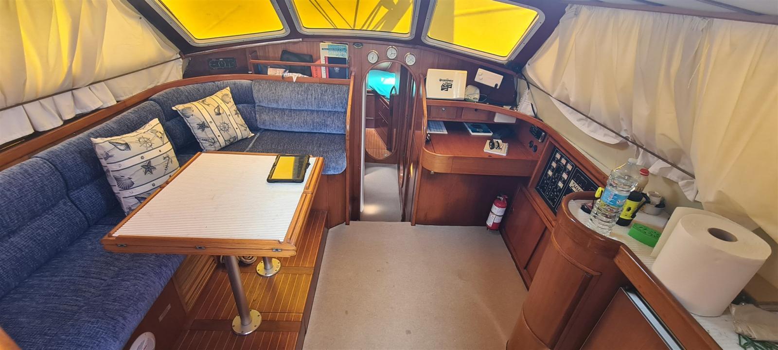 3 cabine con due servizi. un servizio con box doccia separato. La cabina di poppa è a tutto baglio, la cabina di prua è con doppia cuccetta a V e la terza cabina è con letti a castello. Ampia dinette. - Gli ambienti sono climatizzati -