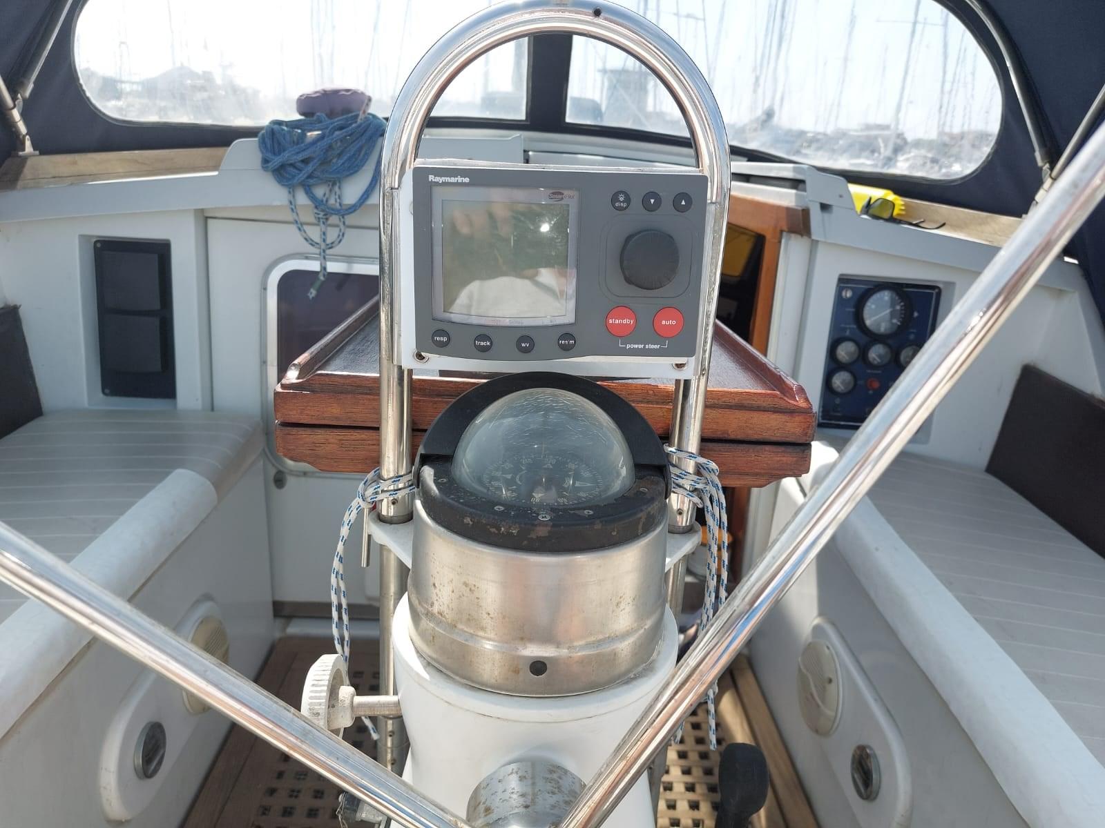 AIS (nuovo), Angolo barra, Display, GPS (nuovo), Pilota automatico (automatico Autothelm ST7000Plus, due control unit), Plotter (Genoav), Radio VHF (nuovo DSC B&G V60 con GPS e AIS integrato), Stazione vento (Raython).