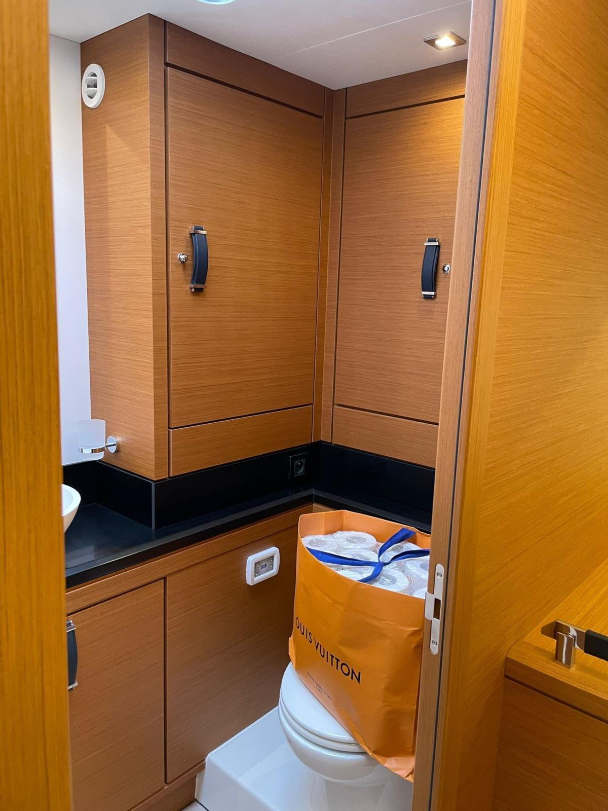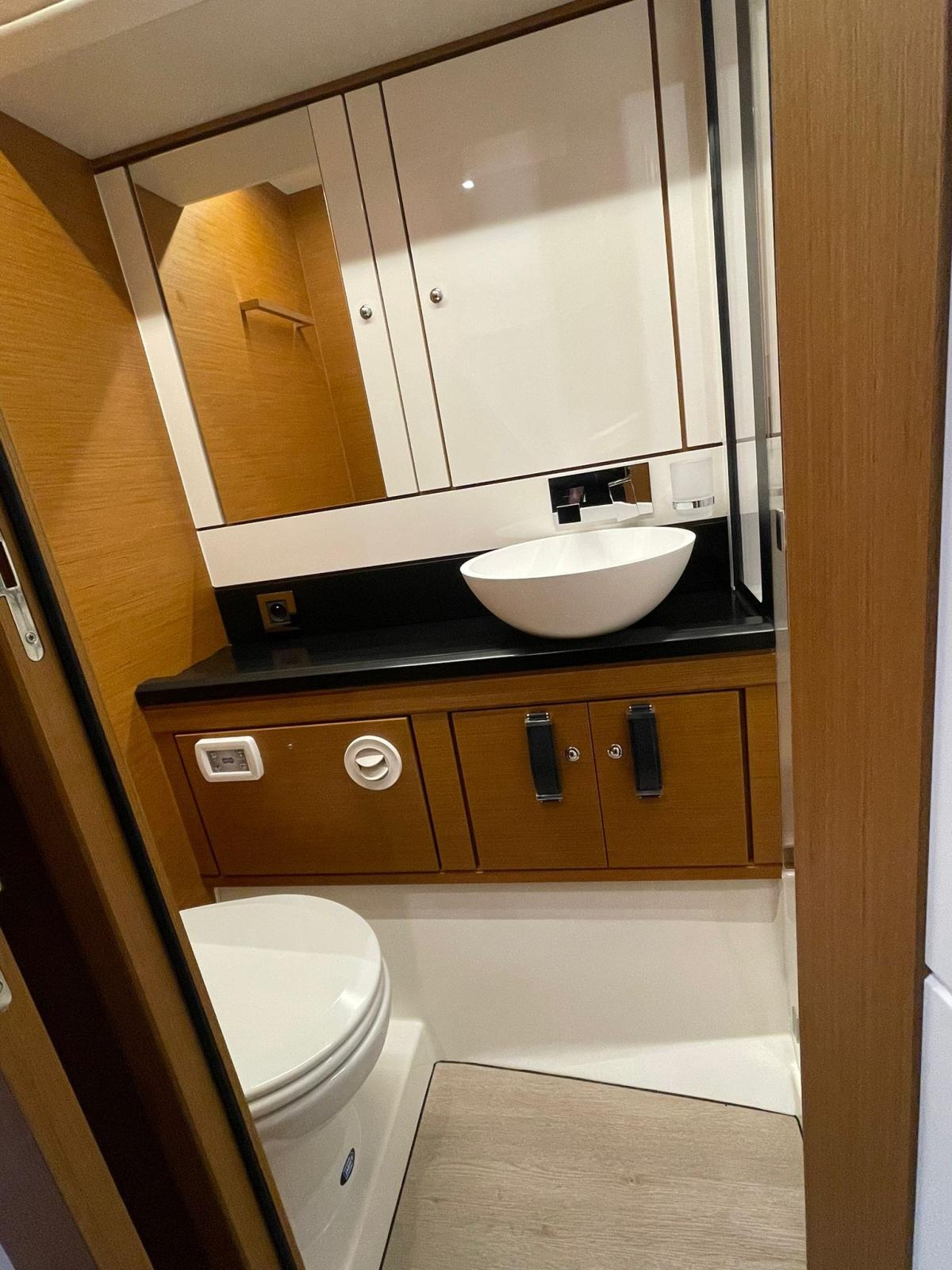 Aria condizionata (60.000 BTU), BBQ/ Grill, Boiler (80l), Clima reversibile, Dissalatore (95l), Impianto acque nere, Pavimento interno in legno, Prese interne 12v, Prese interne 220v, Serbatoio Acque Nere, Telecamera (in sala macchine), 3 WC marino elettrico, WC marino manuale.