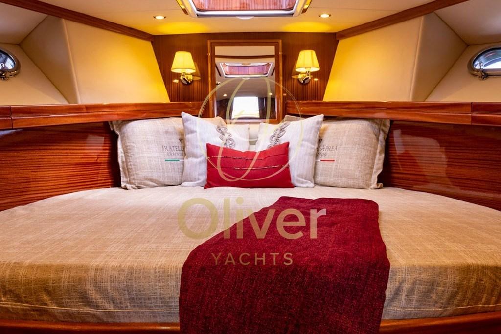Il layout prevede una cabina matrimoniale a prua con letto “italiana” e una seconda cabina con letti a castello, per un totale di 4 posti letto in cabine più 2 in dinette, quindi 6 posti complessivi