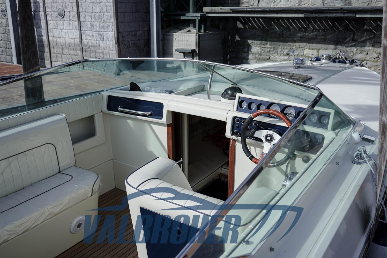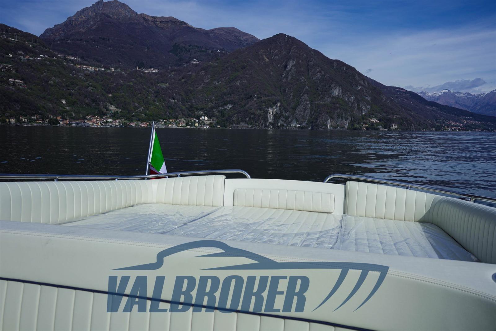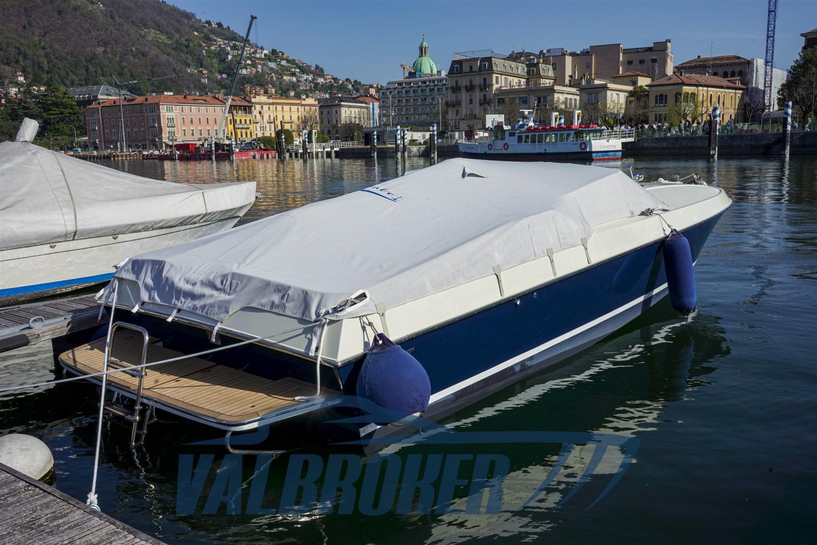 Equipaggiato con 2x228 HP Mercury entrofuoribordo benzina. Eseguito un refit totale tra il 2023 e il 2024: nuova tappezzeria piping blu, plancetta, pozzetto e cabina in teak, stereo Fusion, motori e trasmissioni sbarcati, smontati e revisionati a zero ore Mercury ufficiale lago di Como. Chiglia tirata a zero, applicata antivegetativa nera. Murate verniciate in blu, vano motore e sentina riverniciati. Porta legno a soffietto cabina nuova.