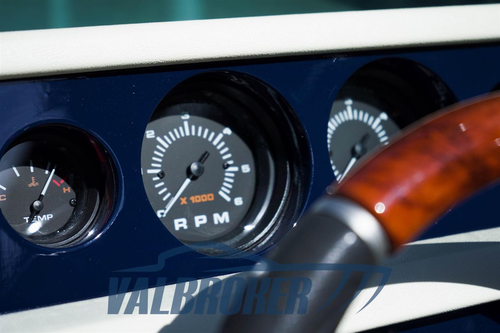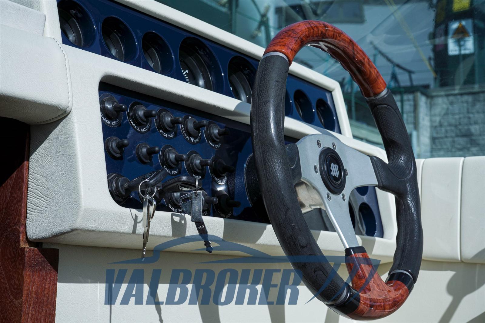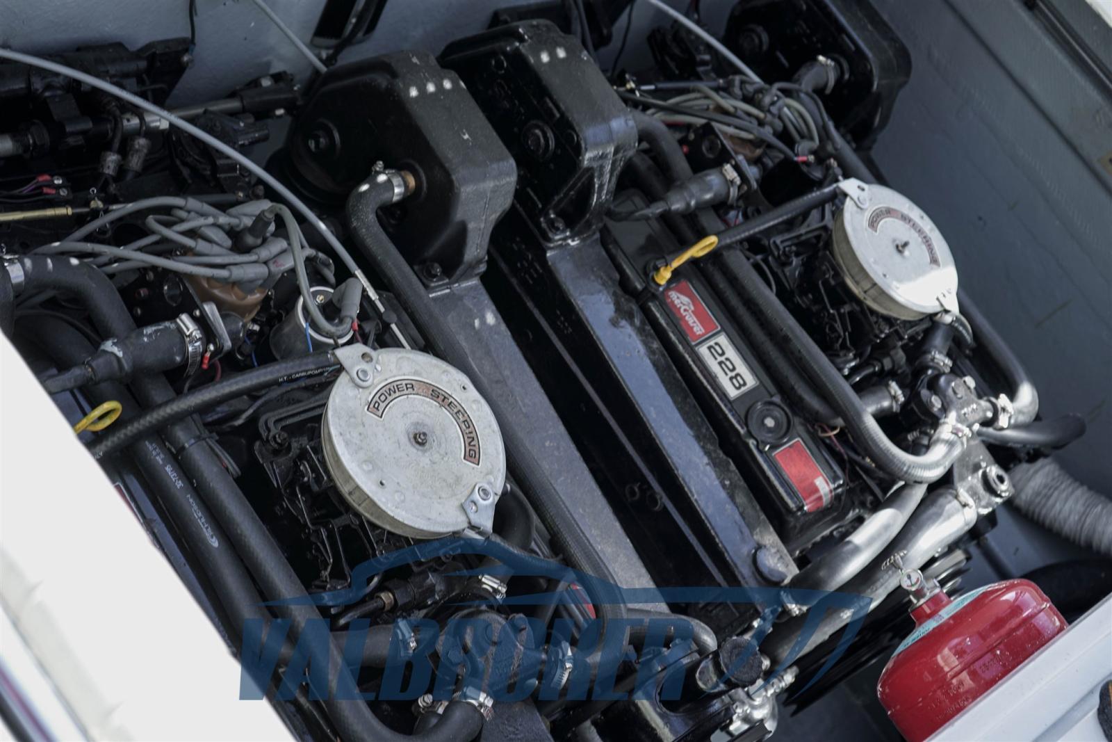 Equipaggiato con 2x228 HP Mercury entrofuoribordo benzina. Eseguito un refit totale tra il 2023 e il 2024: nuova tappezzeria piping blu, plancetta, pozzetto e cabina in teak, stereo Fusion, motori e trasmissioni sbarcati, smontati e revisionati a zero ore Mercury ufficiale lago di Como. Chiglia tirata a zero, applicata antivegetativa nera. Murate verniciate in blu, vano motore e sentina riverniciati. Porta legno a soffietto cabina nuova.