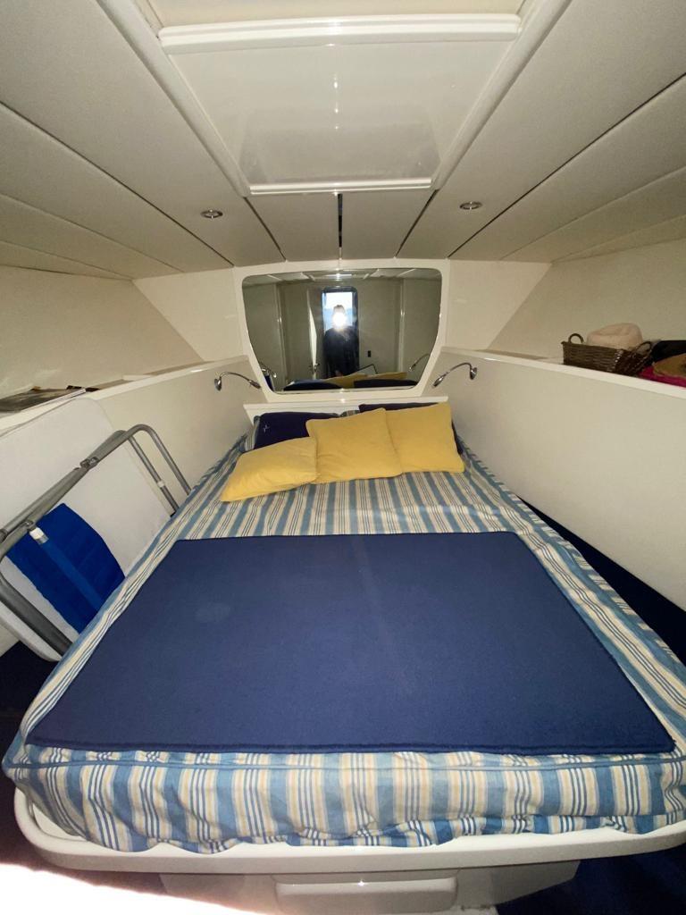 Salpa ancora elettrico Lofrans 800W - ancora Bruce da 20 kg - passerella idraulica - pedana di poppa con scaletta bagno - doccetta esterna - angolo cottura con due piastre, lavello e frigorifero interno - frigo esterno - boiler - impianto stereo - cuscini prendisole.