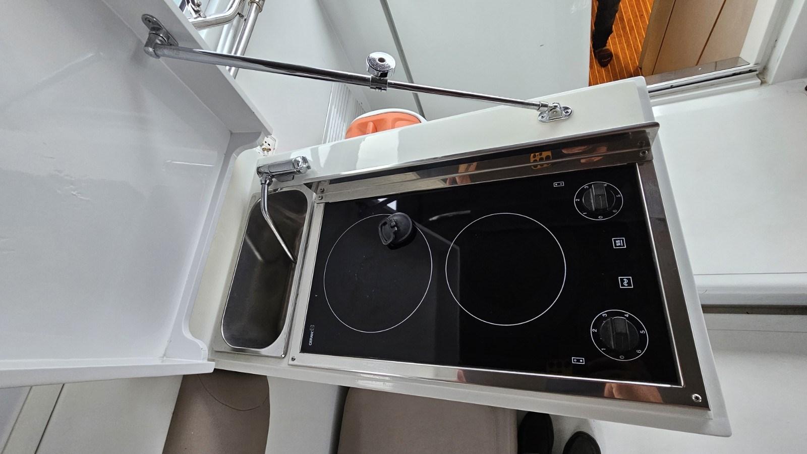 Elica di prua elettrica - passerella elettro idraulica Besenzoni - antenna TV SAT Raymarine - TV LCD - tender con fuoribordo - gruppo elettrogeno EMI 3,5 kW - inverter - mobile bar in pozzetto con lavello e piano cottura elettrico due fuochi - piano cottura elettrico - forno combinato microonde - frigo e ghiacciaia Vitrifrigo in pozzetto - tavolo pozzetto idraulico - doccetta a poppa, pozzetto e prua - scaletta da bagno idraulica e manuale in acciaio.