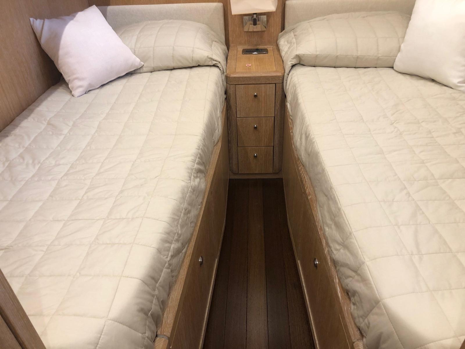 Cabina armatoriale con letto matrimoniale e bagno - cabina ospiti con letto matrimoniale e bagno - cabina ospiti con due letti in piano, terzo letto a scomparsa e bagno.