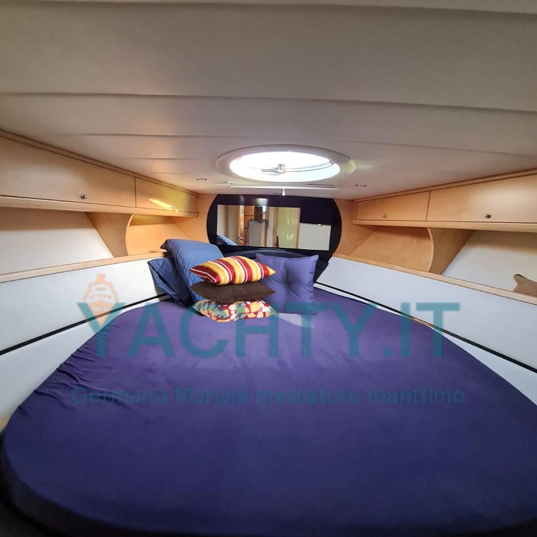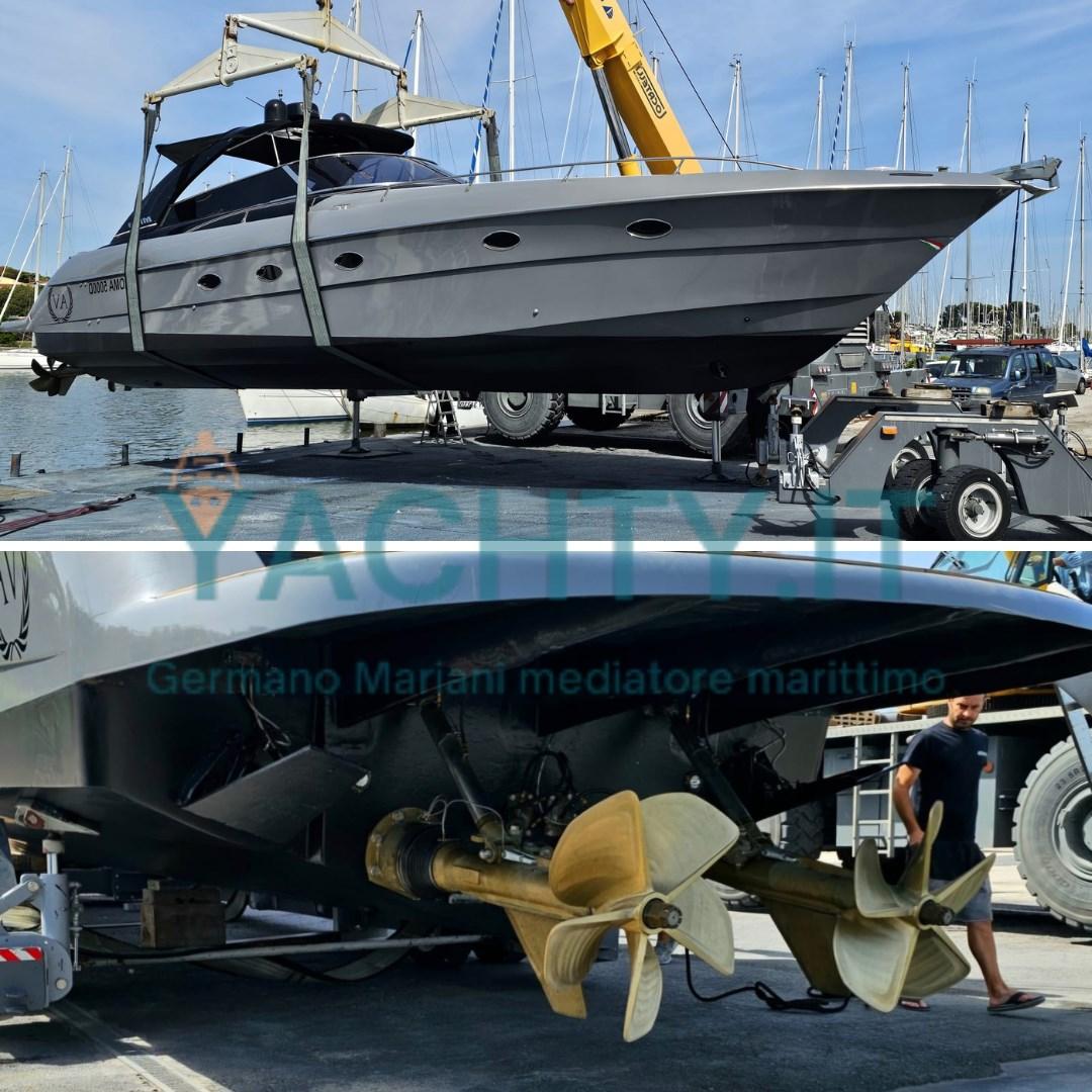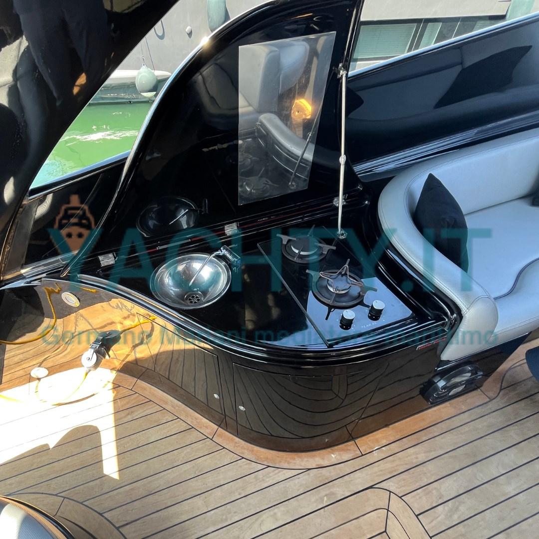 Open ad alte prestazioni, proposto, con refit importante 2023: eliche di superficie nuove con rapporti ottimizzati (prestazioni migliorate e consumi ridotti), manette elettroniche ZF, sala macchine refittata, teak e tappezzeria nuovi.