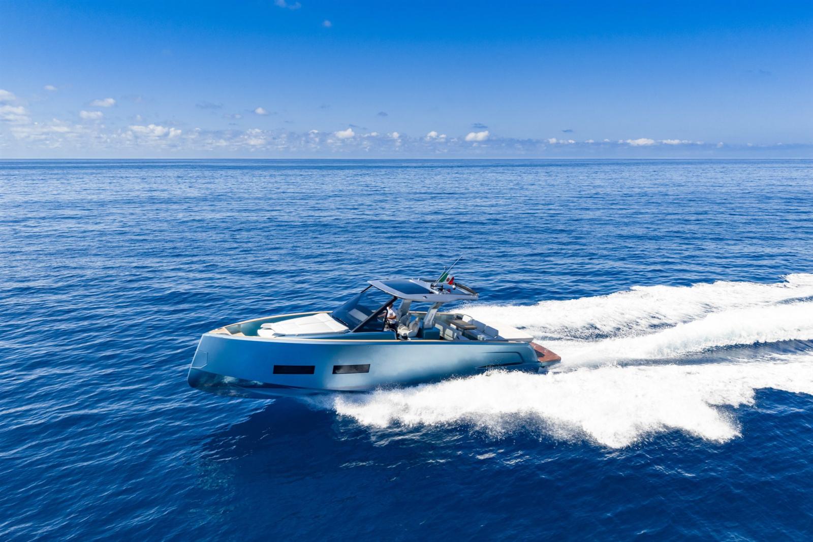 Il PARDO 43 è dotato di due generosi prendisole, di una cucina esterna sotto il T-Top e di una zona salotto all'aperto. Il ponte superiore è multifunzionale e può essere personalizzato. Una piattaforma opzionale può essere installata in aggiunta per gli appassionati di nuoto con una doccia esterna. Può anche essere convertito in una zona di intrattenimento attrezzata con materassi, puff e chaise longue. Un'altra opzione è una cosiddetta piattaforma di sollevamento per ospitare jet ski e giochi d'acqua. L'interno è composto da una grande area con un letto king-size e una cabina separata con altri due letti singoli.