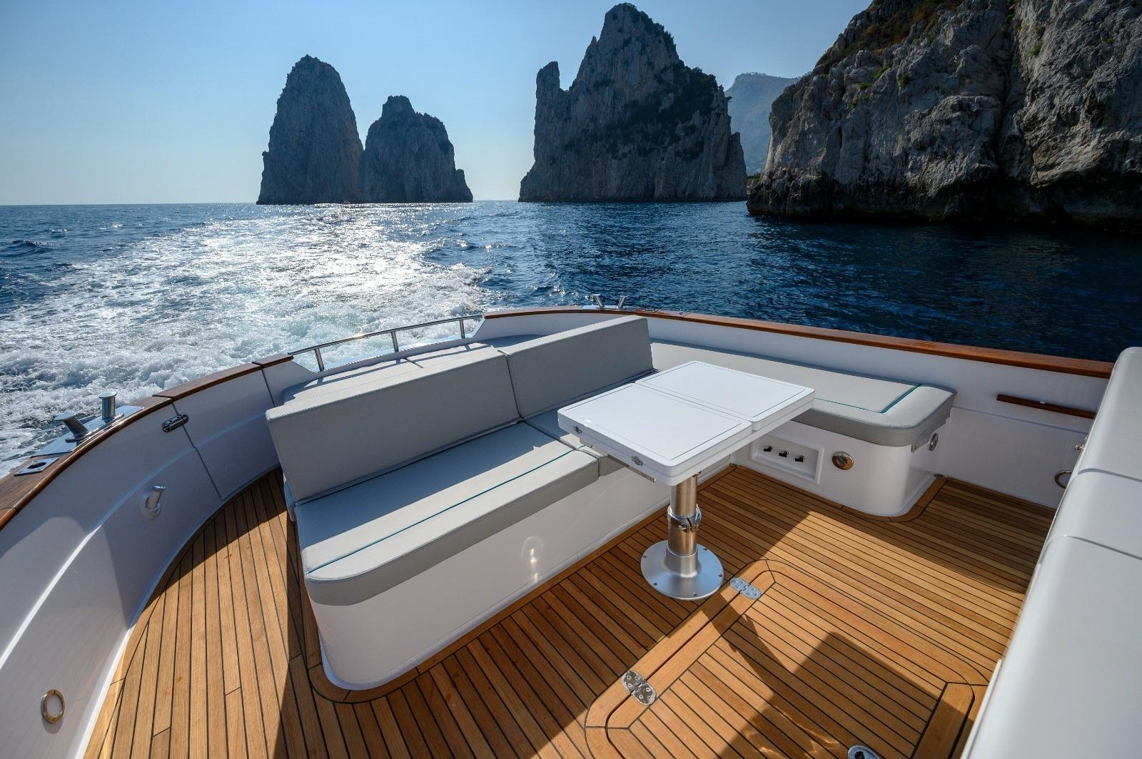 Con la nuova Aprea Mare Gozzo 35, Aprea mare è riuscita ad adeguare la classica linea Gozzo ai desideri attuali, con un'ampia gamma di possibilità di scelta del motore sia con albero elica (con potenza da 270 CV. fino a 320 CV.) che con comando a stella (con potenza da 230 CV. fino a 320 CV.) da installare. Gli interni sono spaziosi e moderati, e completamente attrezzati. Posizionando una cucina all'aperto, dei lettini prendisole, il nuovo Gozzo ha molto spazio in coperta per rilassarsi o rilassarsi, con una grande attenzione al design dello scafo con linee che lo collocano in una linea più contemporanea, nel rispetto dei canoni estetici del classico Gozzo Sorrentino.