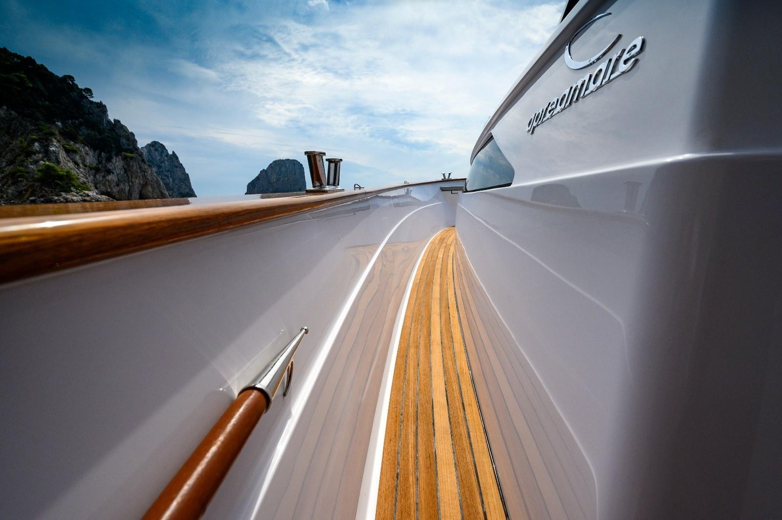 Allarme fumo/gas, Alternatore, Apertura Vano Motore Elettrica, Aspirazione dal Ponte delle Acque Sporche, Autoclave, Auto-Trim, Bocche di Lupa, Camminamenti laterali in teak, Cavo corrente di banchina, Colorazione speciale, Doccia esterna, Gancio Traino per Sci Nautico, Hard top, Impianto antincendio, Lavandino nel Pozzetto, Luci di cortesia, Luci subacquee, Monitor batteria, Parabordi, Passerella, Piattaforma, Pompa di Scarico del Serbatoio Acque Reflue, Pompa di sentina automatica, Ponte in teak, Porta ingresso, Pozzetto Teak, Presa 220V banchina, Salpa Ancore Elettrico, Scala reale, Scaletta da bagno, Tavolo Salone Abbattibile, Tromba, T-Top.