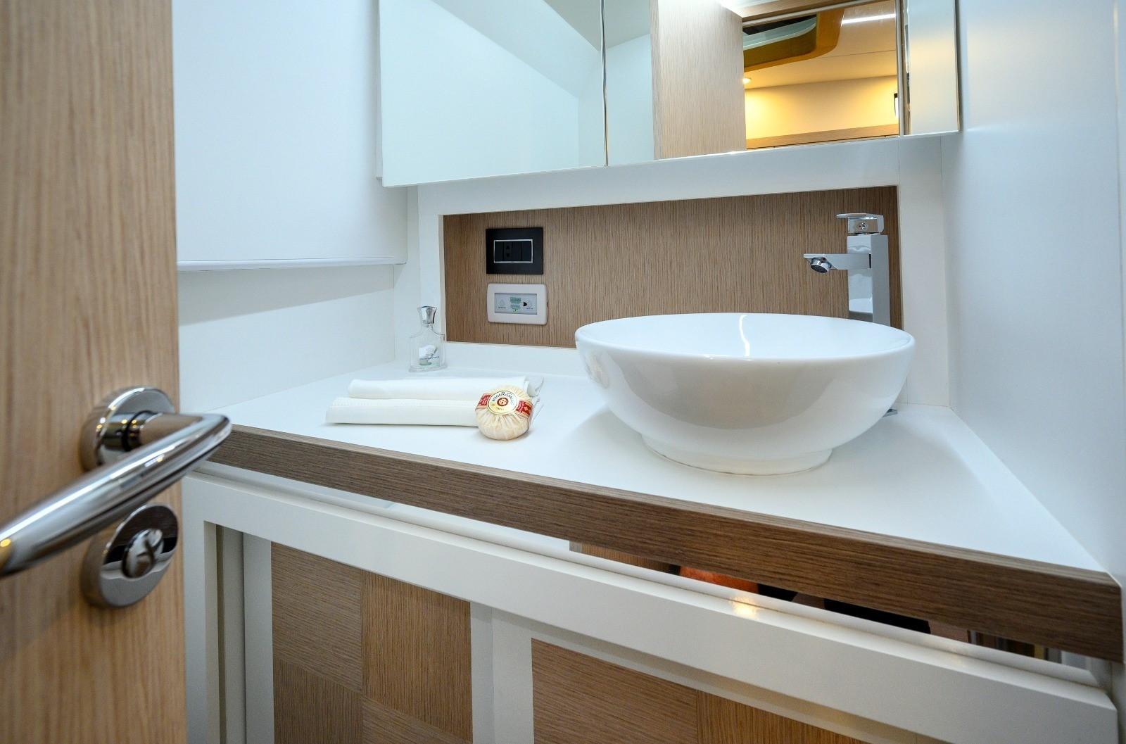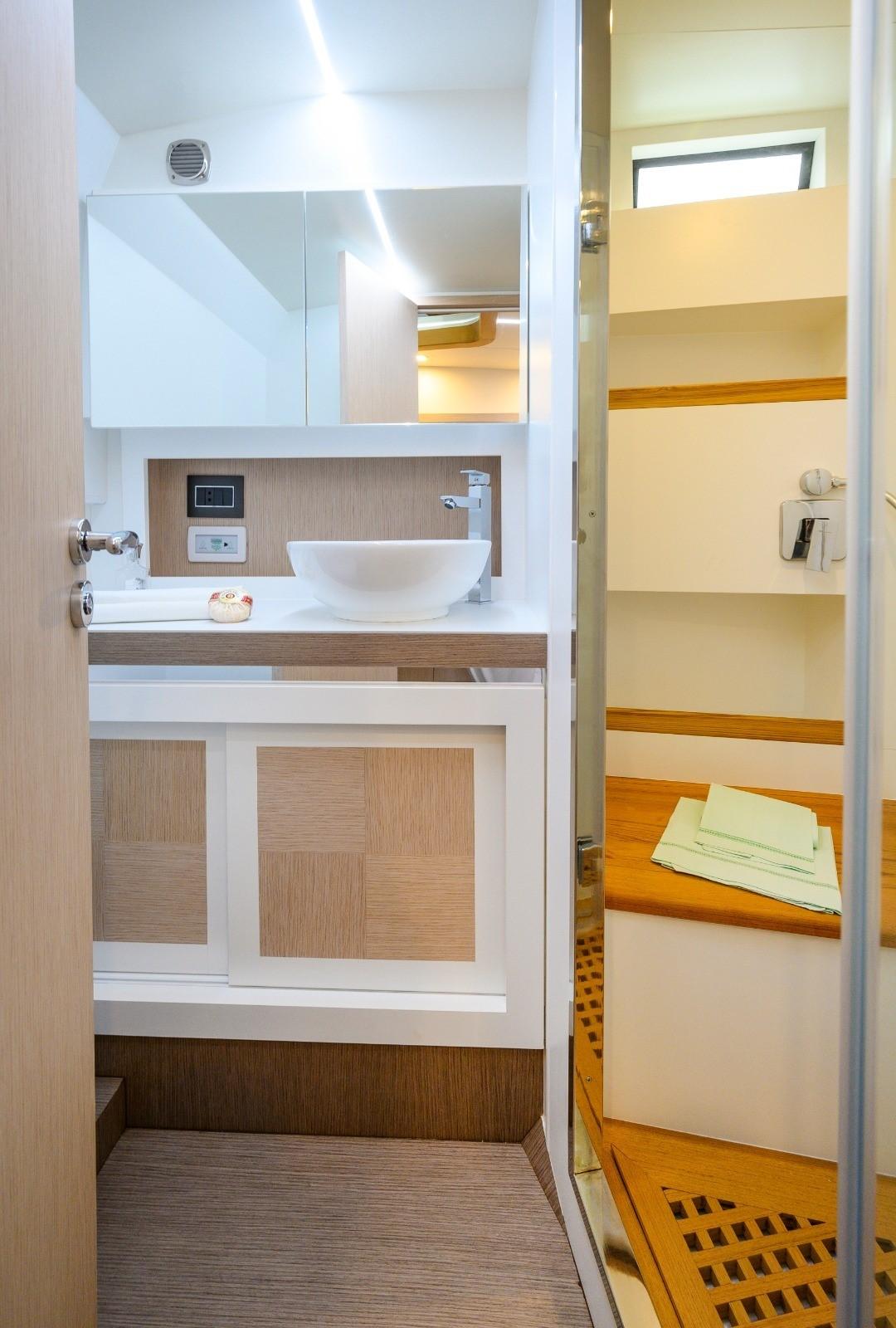 Acqua Calda, BBQ/ Grill, Boiler, Clima reversibile, Dissalatore, Impianto acque nere, Indicatore del serbatoio del carburante, Indicatore del Serbatoio dell’Acqua, Indicatore del Serbatoio delle Acque Reflue, Indicatore della pressione dell’olio nel motore, Indicatore della temperatura del motore, Pavimento interno in legno, Prese interne 12v, Prese interne 220v, Serbatoio Acque Nere, Sistema Idrico (Druksysteem), WC marino elettrico.