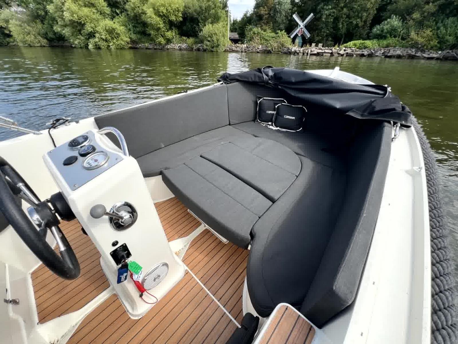 Il parabordo, la capottina e la cuscineria sono in ottime condizioni, consentendovi di goderne immediatamente senza ulteriori investimenti. Che vogliate navigare tranquillamente tra i canali, pianificare una giornata sul lago o cercare la velocità, questo tender offre tutto questo. Dotato di più punti di ricarica USB a 12v e di un sistema radio, avrete ogni comodità. Il bimini offre ombra nelle giornate più calde, mentre il prendisole può essere utilizzato per rilassarsi o trasformarsi in una spaziosa area salotto con tavolo, ideale per un drink o un pranzo a bordo.