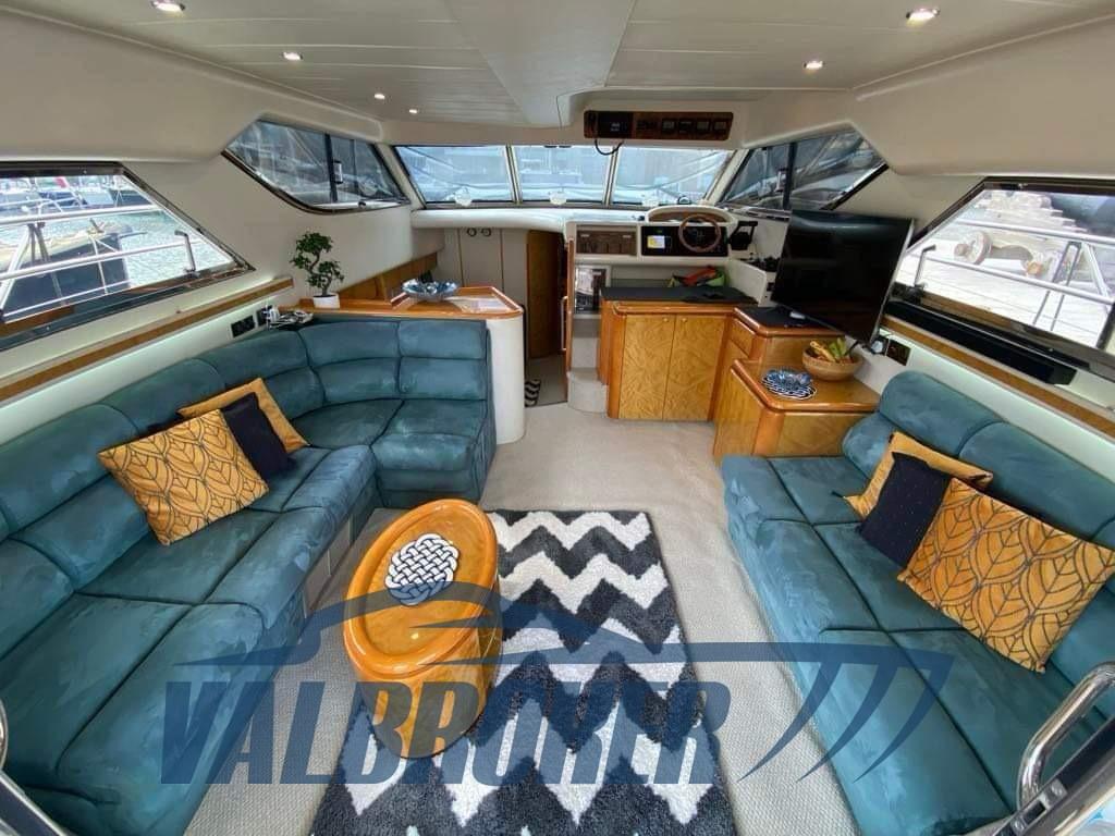 Un classico senza tempo che unisce prestazioni con comfort ed eleganza. Questo flybridge, spazioso e ben realizzato, è rinomato per la sua qualità e durata. Alimentato da due motori Caterpillar, offre un'eccellente stabilità, perfetto per crociere prolungate. Mantenuta costantemente.