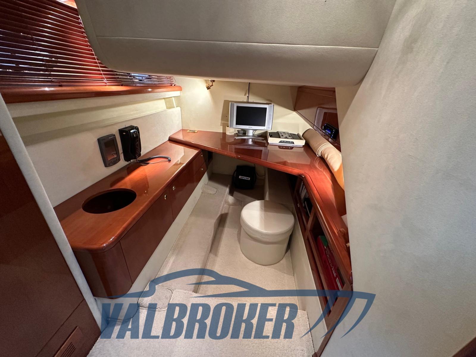 Bussola (Azimut), Comando motori elettronico (Caterpillar), Contametri catena, Display (Raymarine), Pilota automatico (Raymarine con telecomando), Radar (Raymarine).