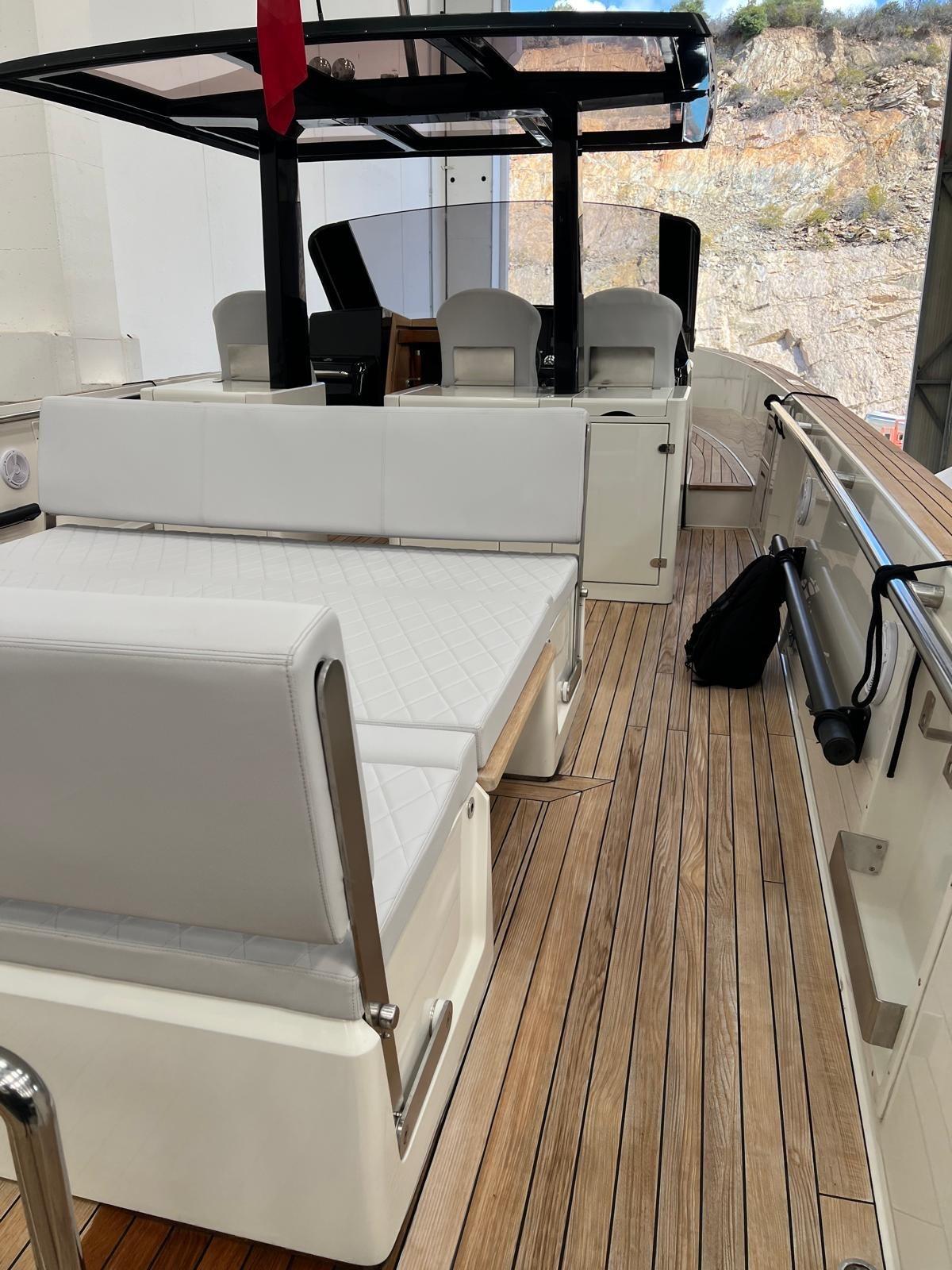 Servizio motori e trasmissioni completo previsto al raggiungimento delle 1500 ore, sostituzione batterie e carica batterie, sostituzione di tappezzerie, cuscini e coperture, sostituzione tendalini T - Top ed ombreggianti, riverniciatura cruscotto in colore nero, riverniciatura T - Top in colore nero, riverniciatura mobile esterno cucina in colore bianco, riverniciatura montanti parabrezza in colore nero, sostituzione di N.3 frigoriferi, sostituzione plotter Raymarine con nuova versione, installazione nuovo generatore, sostituzione impianto anti incendio, installazione nuovo apparato vhf, sostituzione piano cottura con versione ad induzione, sostituzione pulsanti consolle, plancia di poppa estesa e rivestita in teak come Fjord 42. Tutte le manutenzioni straordinarie sono documentabili.