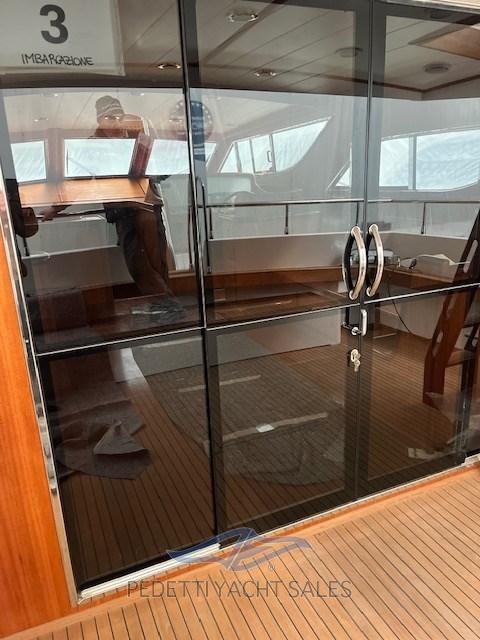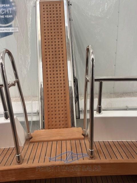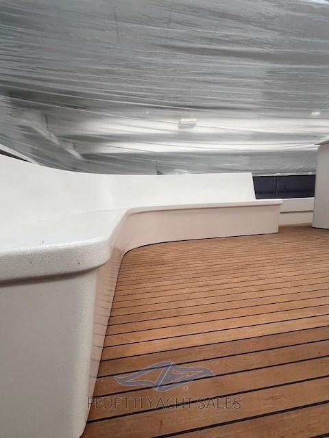 Allarme fumo/gas, Allarme motore, Allarme sentina, Alternatore, Autoclave, Camminamenti laterali in teak, Cavo corrente di banchina, Corrimano, Doccia esterna, Doppia timoneria, Elica di rispetto, Faro orientabile, Flap elettrici, Luci di cortesia, Parabordi, Passerella, Piattaforma, Pompa di sentina automatica, Pompa di sentina manuale, Ponte in teak, Porta ingresso, Pozzetto Teak, Presa 220V banchina, Rollbar, Salpa Ancore Elettrico, Scaletta da bagno, Tavolo pozzetto, Tromba.