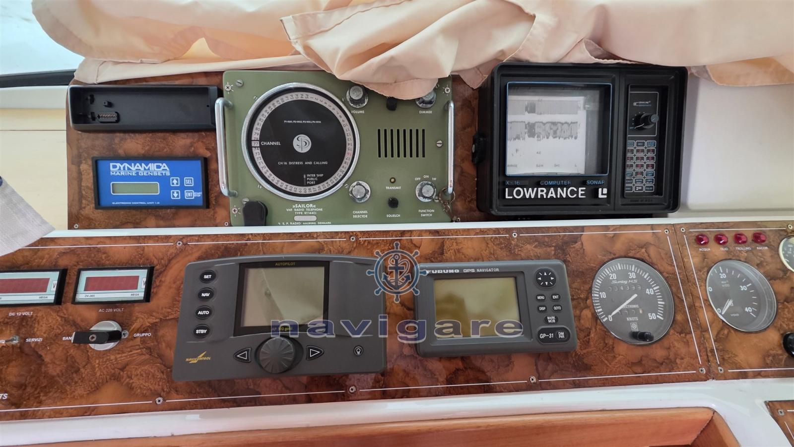 Antenna radar, 2 Ecoscandaglio (Geonav 10c - KODEN), GPS (Garmin sul fly), Pilota automatico (NAVICONTROL AP 303 GOLD), Radar (FURUNO NAV NET C-MAP NT), 2 Radio VHF (Cobra portatile E SAILOR).