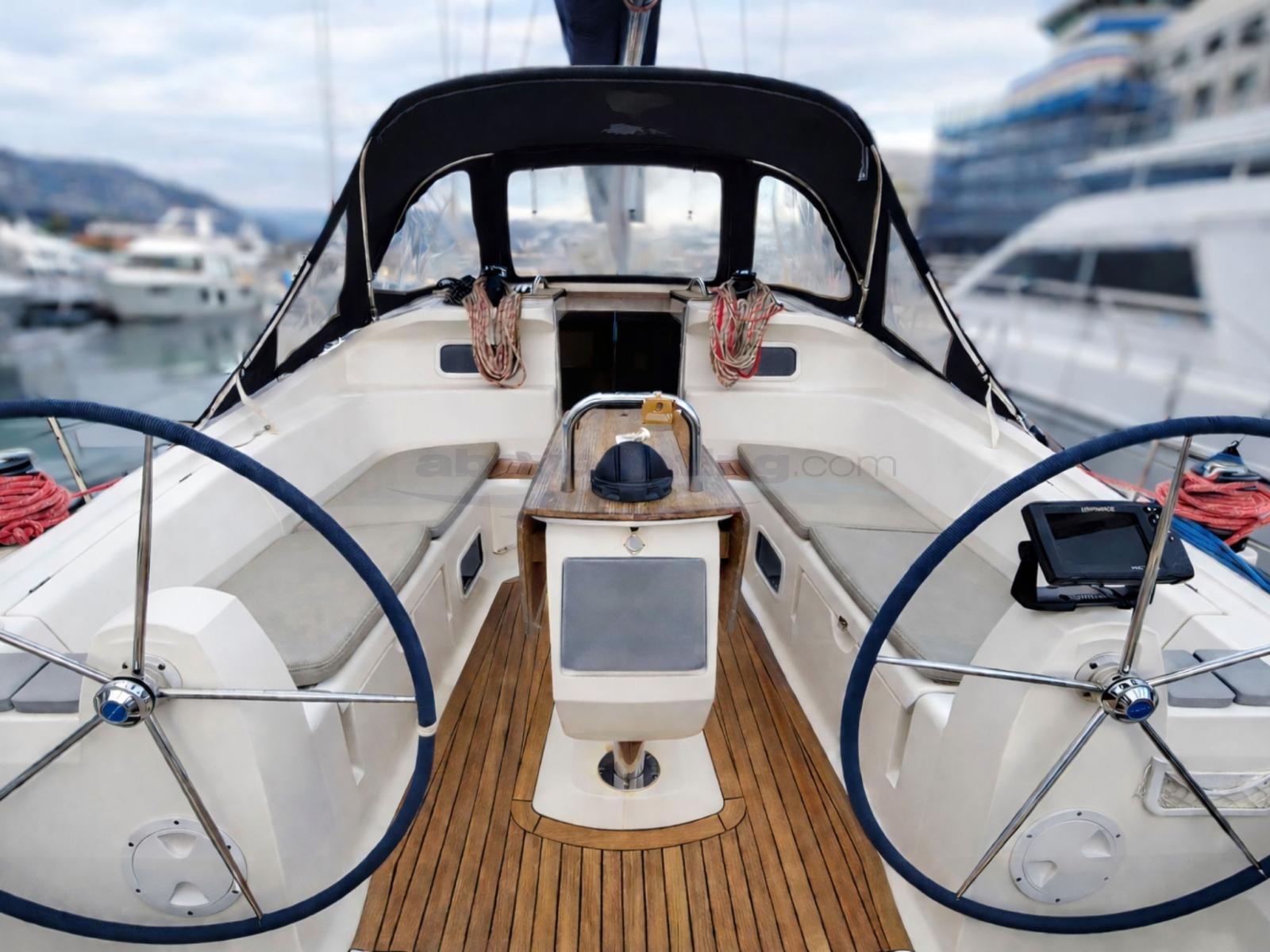 Angolo barra, Bussola (Plastimo Olimpic 125), Contamiglia (Raymarine), Display (Raymarine ST 60+), Ecoscandaglio (Raymarine), Log (Raymarine), Pilota automatico (Raymarine ST 6001), 2 Plotter con antenna GPS (Raymarine C80 + Lowrance), Radio VHF (Ocean R0470).