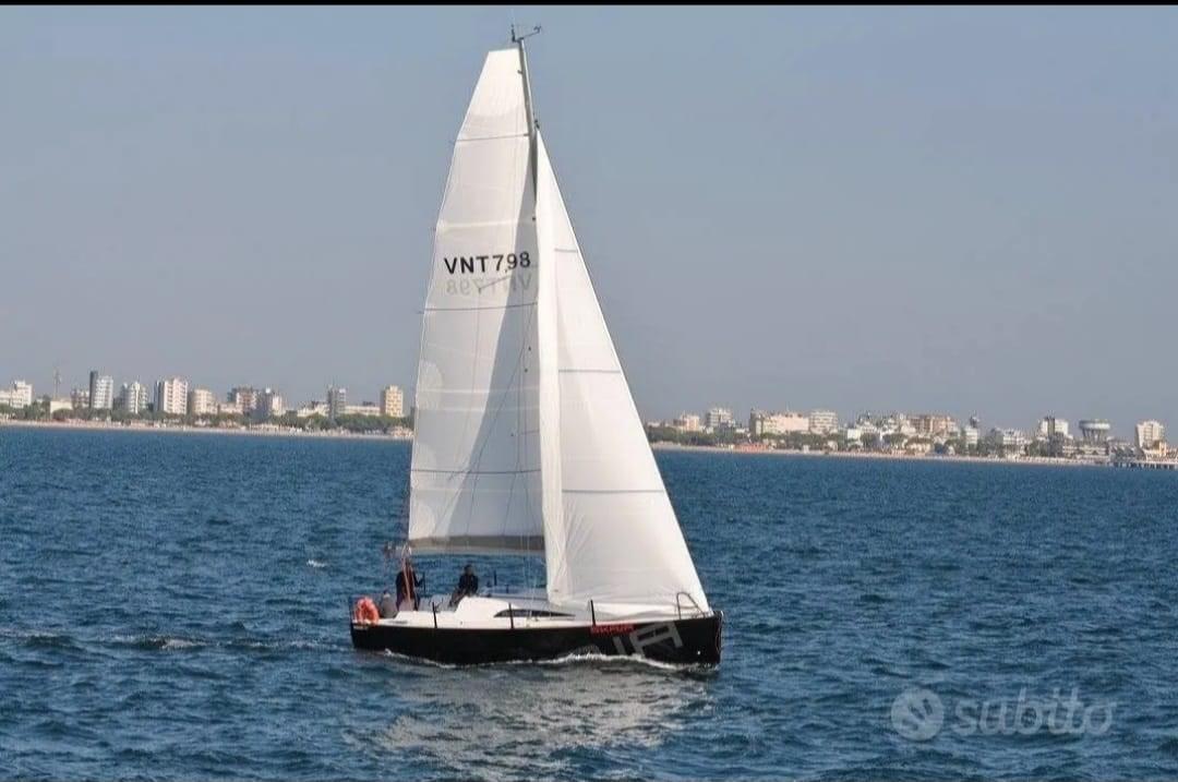 Bonin 31 del 2016, Cossutti yacht desing, barca sportiva votata alla performance: prua verticale, poppa aperta, tuga affusolata. Scafo e coperta costruiti in sandwich con infusione in sottovuoto opera viva in solid. Piano velico: 58mq, 3 tonnellate di peso, rapidissima nel vento leggero ma tranquilla anche nel vento forte perché dotata di un bulbo a T con un’immersione di 2m per quasi una tonnellata. Albero alluminio sartie in dyform paterazzo dynema 2025, avvolgifiocco under deck. Lombardini 20 Cv 2016, 500 ore sempre tagliandato, tre batterie 2025, dotazione vele crociera 2016 randa dacron full batten square top, fiocco in dacron, spinnaker allenamento e gennaker con calza, lazy bag. Vele regata nere 2016 fiocco medio pesante 2024 fiocco leggero, randa semi steccata e spinnaker all round 2025 fiocco medio leggero. Tangone e candelieri in carbonio bompresso in fibra di vetro originale cantieri bonin. Dirizze e circuito spinnaker 2024. Attrezzatura di coperta Antall. Salpa Ancora Quick. Tavolo interno in teac completamente smontabile. Pilota automatico st2000+, Plotter Raymarine Element 7 con cartografia mediterraneo, stazione vento e strumenti ripetitori all'albero Garmin, tutto in rete nmea2000. VHF fisso Icon. Dotazioni entro 50 migli zattera 6p compresa revisione 2026. Due pompe sentina elettriche ed una manuale, autoclave e predisposizione boiler, frigorifero e cucina due fuochi, illuminazione led e prese USB al carteggio e nelle cabine doppie prua e poppa. Gasolio 70 litri due serbatoi acqua da 100 litri. Ancora delta 10 kg 25 metri catena 8mm e 35 mt cima per verricello. Ancora di rispetto, barra timone di rispetto elica pale abbattibili gori. Tendalino sul boma con cerniere sul lazy bag ed altro. Possibile consegna nel mediterraneo da concordare.