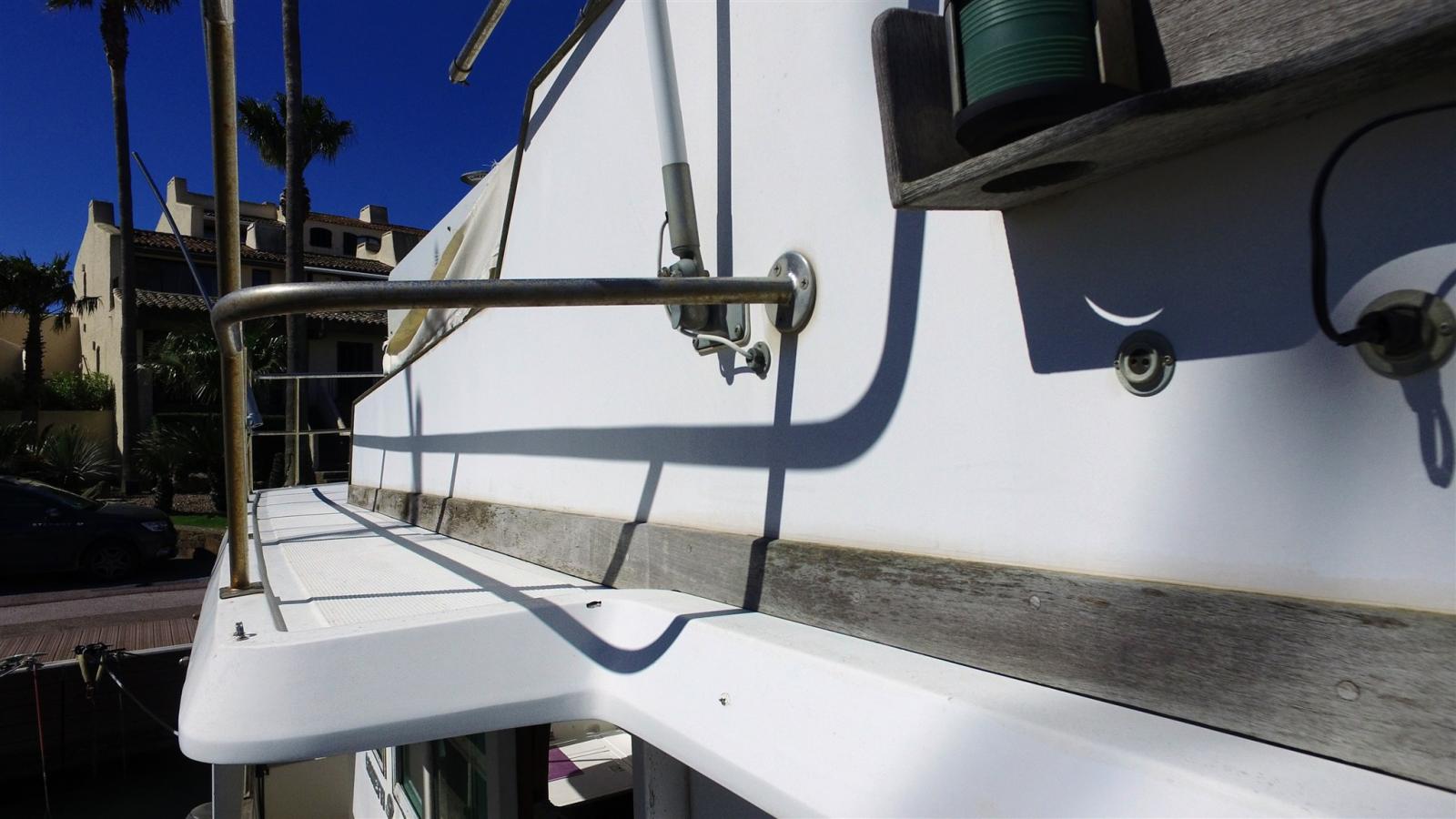 Ancora (Brade 25kg et 50m de chaine de 10), Autoclave, 5 Batterie, Caricabatterie (TECSUP 40Amp), Cavo corrente di banchina, Doccia esterna, Elica di prua - bow thruster (MAXPOWER), Passerella (hydraulique), Piattaforma, 3 Pompa di sentina elettrica, Pompa di sentina manuale, Presa 220V banchina, Salpa Ancore Elettrico (Lofrans 1000w), Scaletta da bagno, Tavolo pozzetto (sur fly), Winch tonneggio di poppa (Lofrans à re-éviser).